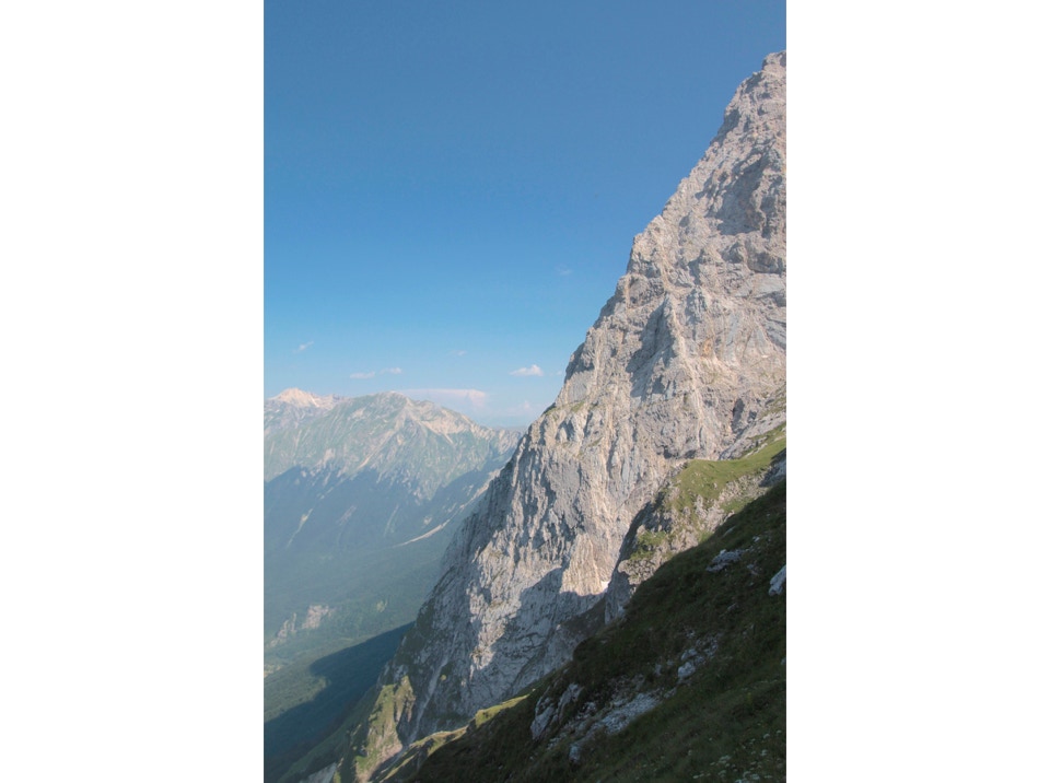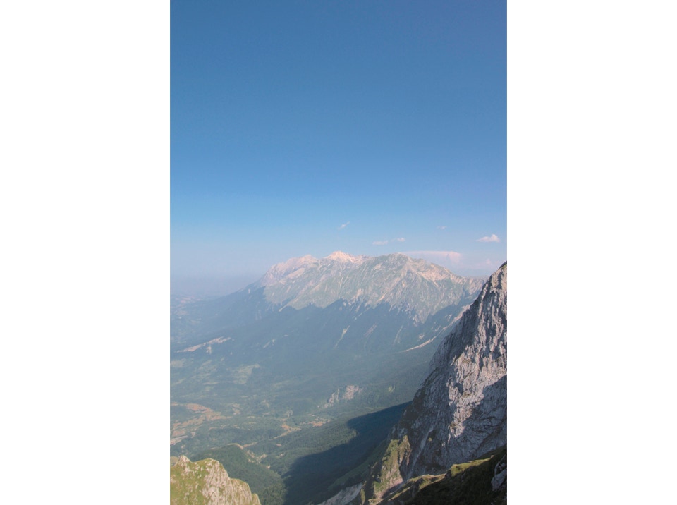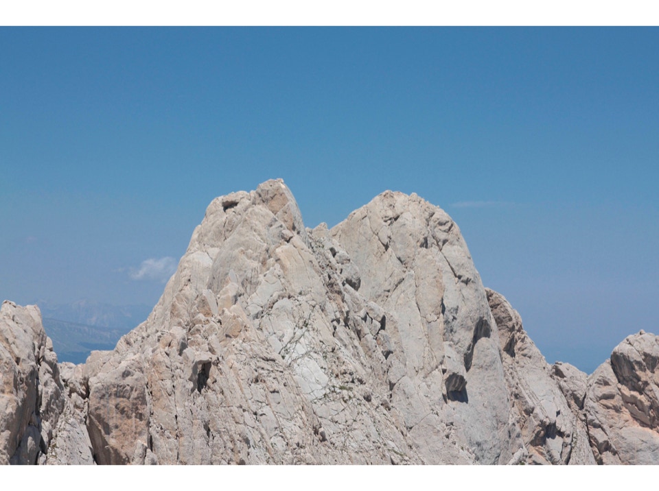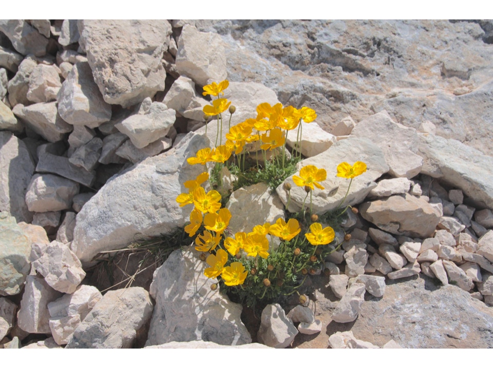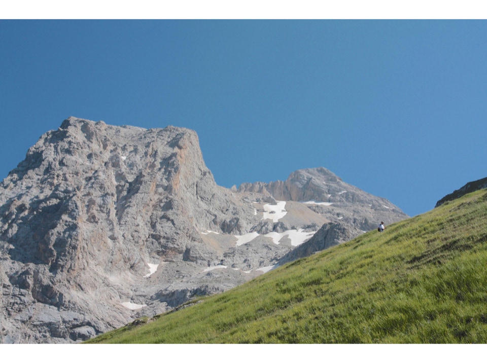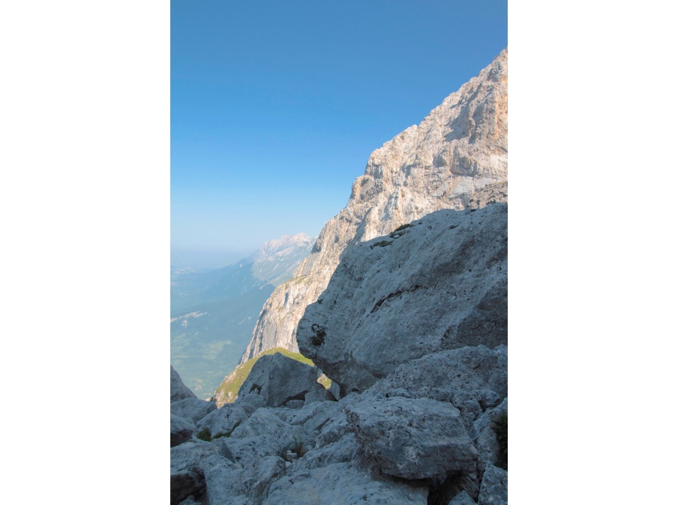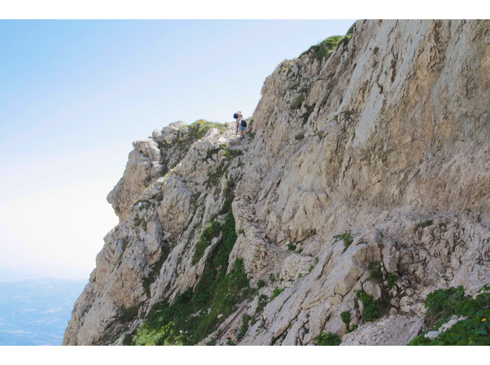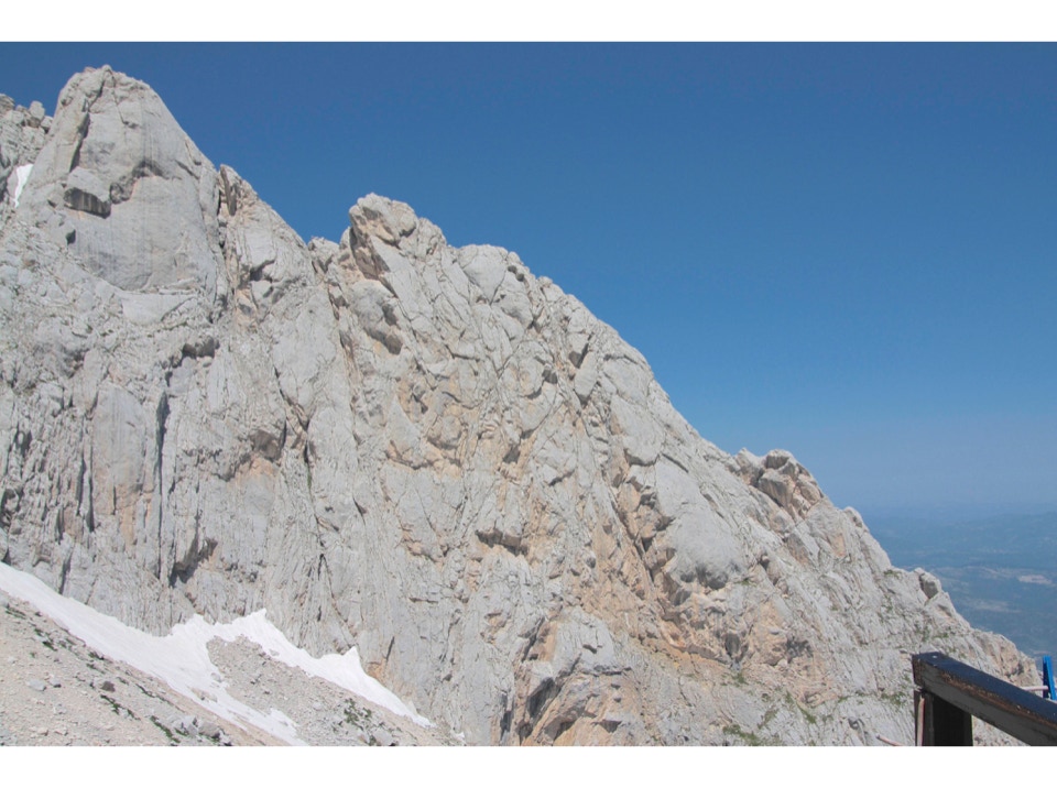 Attraversato il Passo delle Scalette (2100 mt) il sentiero si snoda tra grossi massi (caratteristico l'arco formato tra due di questi) fino a raggiungere, verso sinistra lo sperone roccioso che divide in due la valle. Un breve tratto più impegnativo (esposto, corda fissa) permette di superarlo. Si continua con tornanti e tra massi fino ad obliquare a sinistra al rifugio Franchetti (2433 mt). Dopo una doverosa sosta al rifugio si riprende, a destra, il sentiero che rapidamente permette di raggiungere la Sella dei Due Corni (2547 mt). Bella vista sulla Val Maone, i pilastri di Pizzo Intermesoli e le vicinissime Fiamme di Pietra. Si continua su ghiaie in direzione del passo del Cannone (2679 mt) fino al bivio che, a sinistra in saliscendi, permette di raggiungere l'ampia conca alla base del ghiacciaio del Calderone. L'anfiteatro, dominato dalle vette del Corno Grande, è splendido!