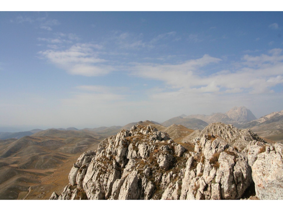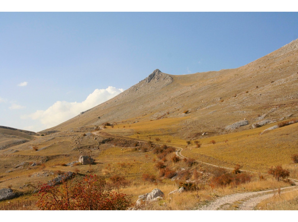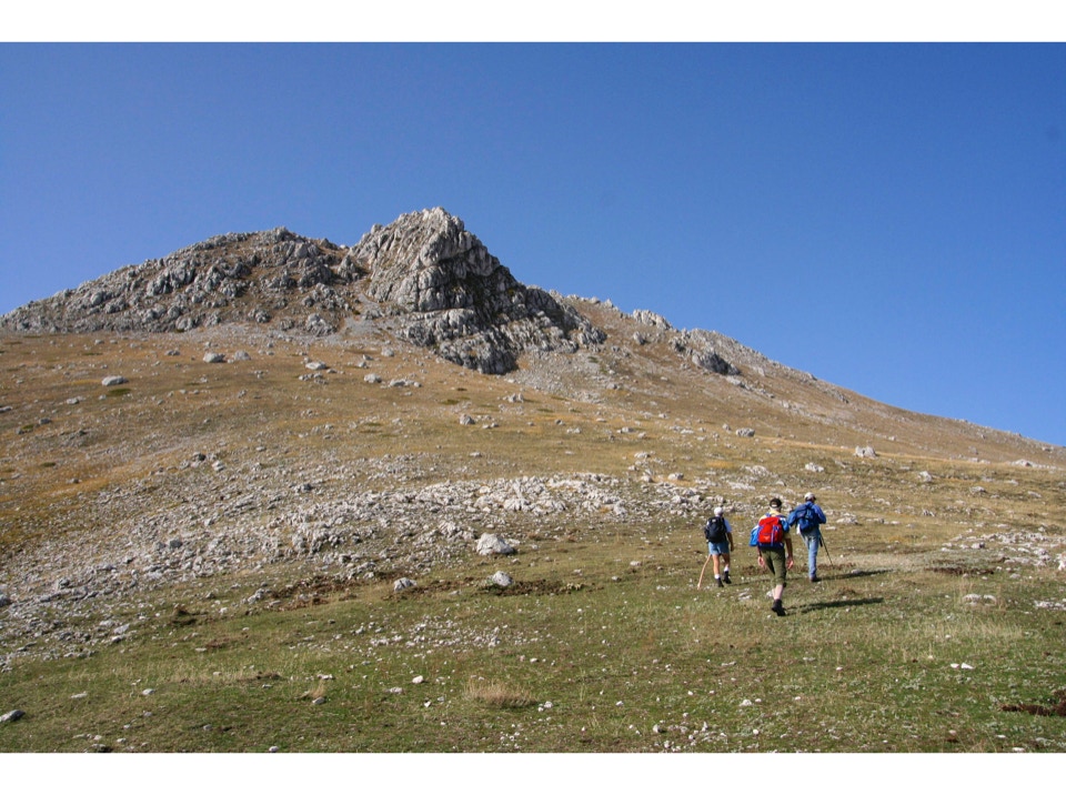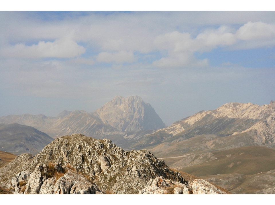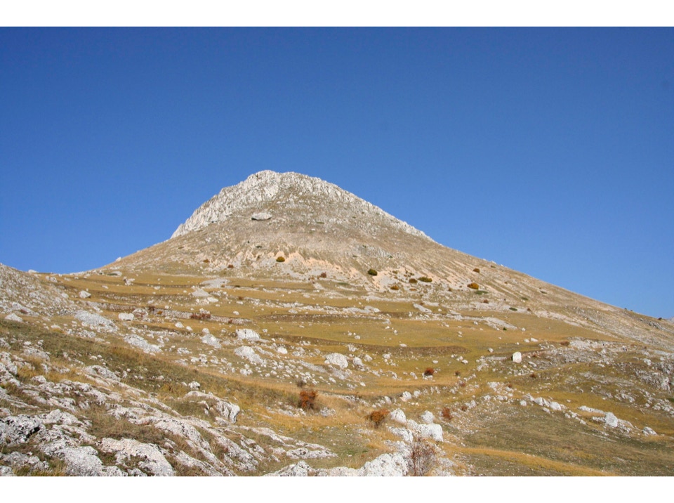 Salendo da Castel del Monte, ci si presenta subito davanti con la sua forma caratteristica, quasi una piramide perfetta, alta 1904 metri.
