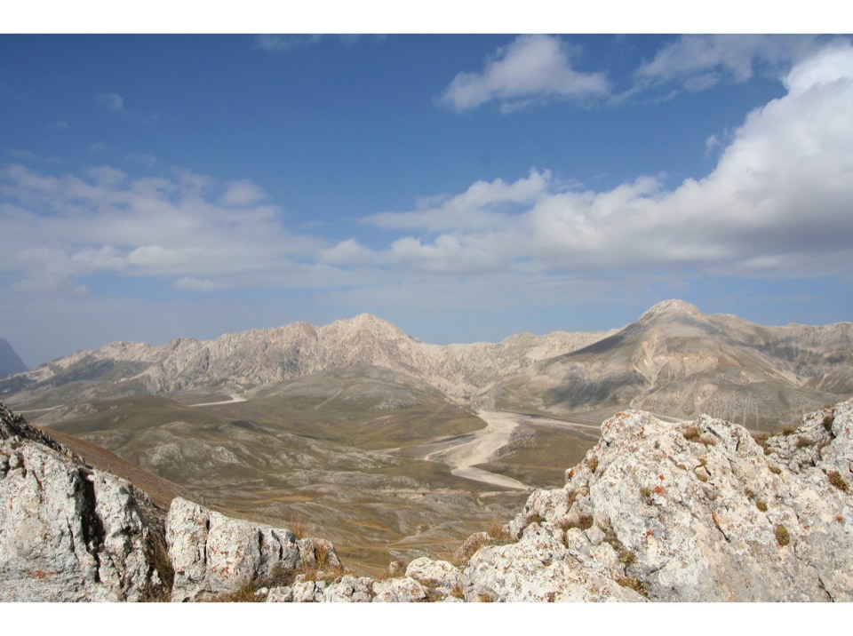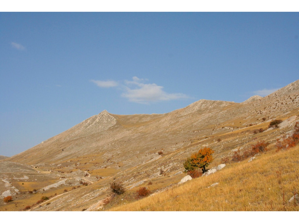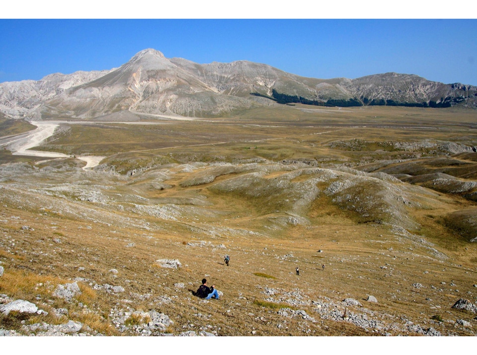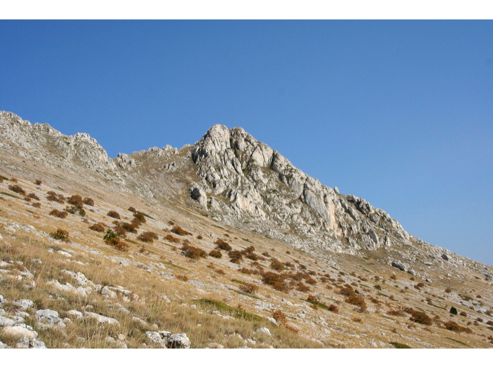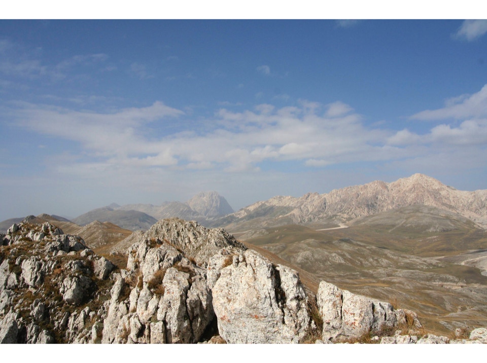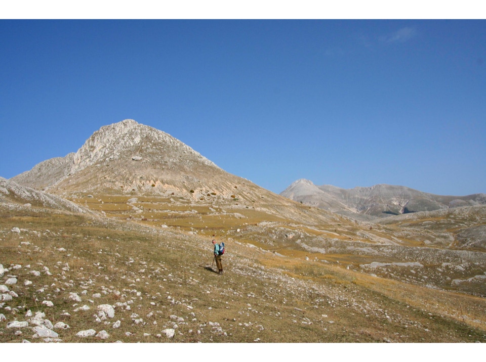 Salendo da Castel del Monte, ci si presenta subito davanti con la sua forma caratteristica, quasi una piramide perfetta, alta 1904 metri.