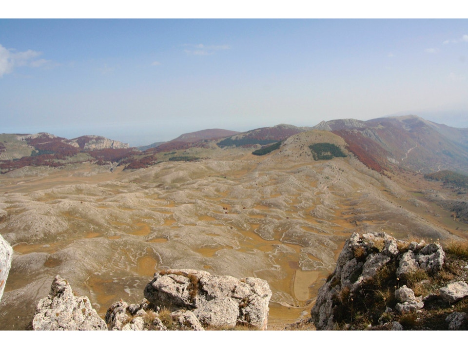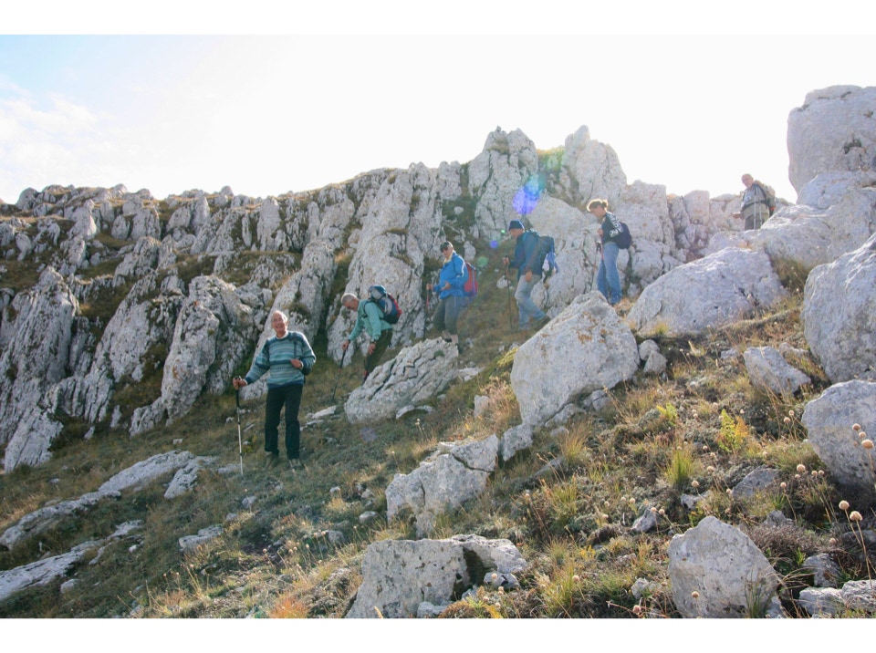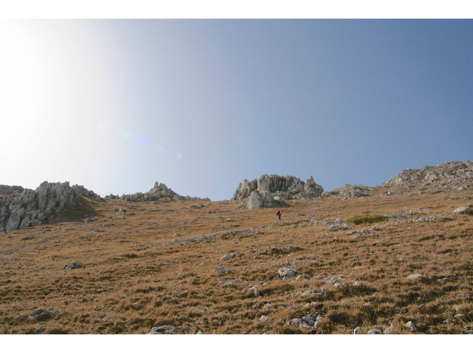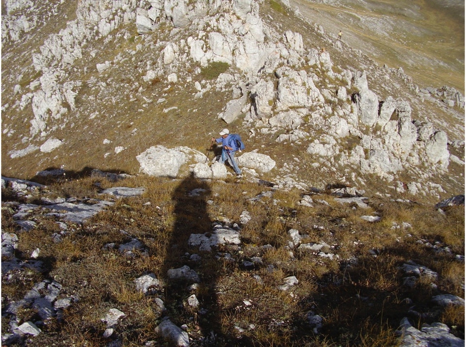 Stupende le numerose insenature, avvallamenti e fosse che portano verso il monte. Achille ha completato l’escursione raggiungendo la Cima di Monte Bolza (m 1920).