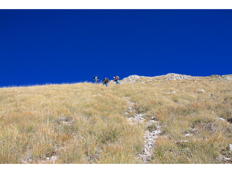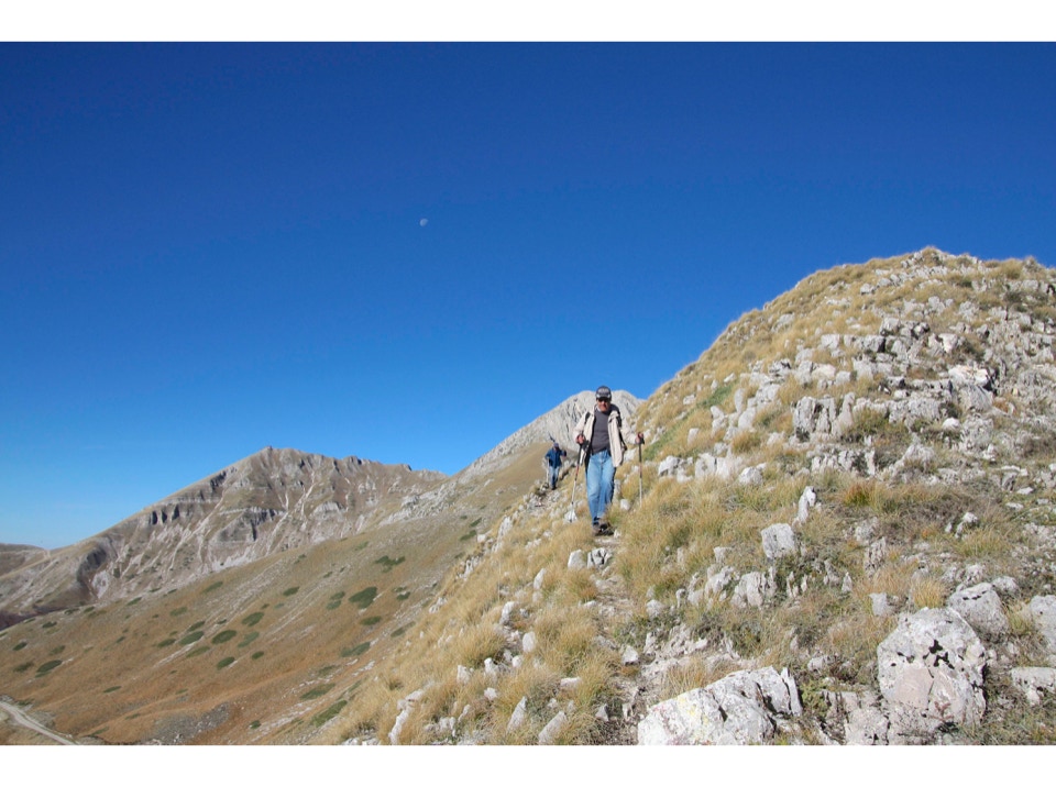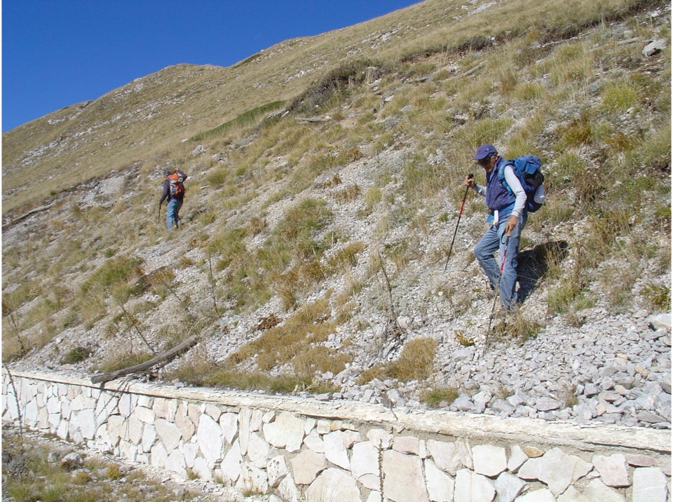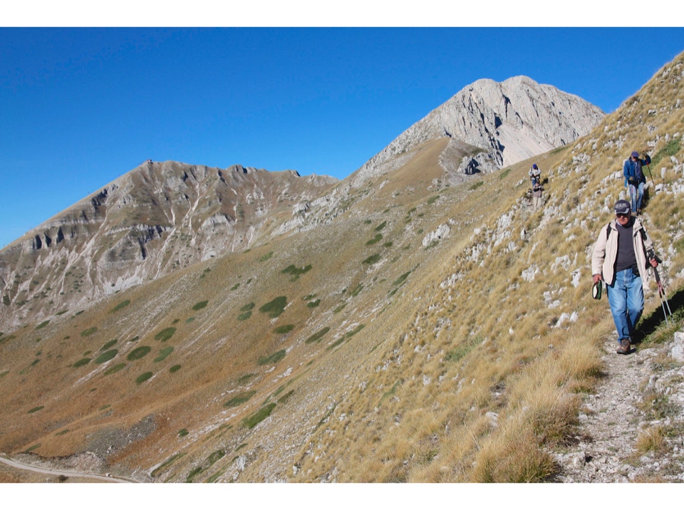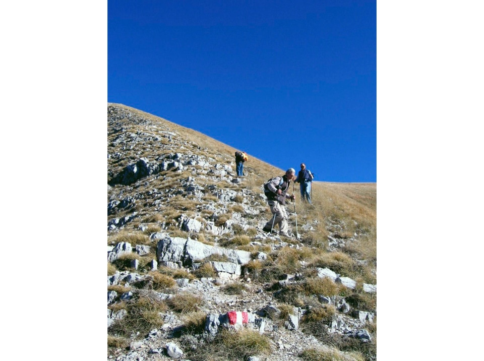 Il percorso abbastanza breve, ma a tratti impegnativo, percorre inizialmente la cresta affilata di Pratorecchia, poi diviene man mano sempre più ripido, fino alla tondeggiante cima. Immediatamente a sud si trova l’anticima meridionale dell’Elefante, il Monte Valloni (2004 m), raggiungibile dalla vetta, percorrendo poche centinaia di metri. Per il ritorno, si è scesi direttamente dalla cima alla strada sterrata che proviene da Micigliano e che porta in poco tempo al Rifugio Sebastiani.