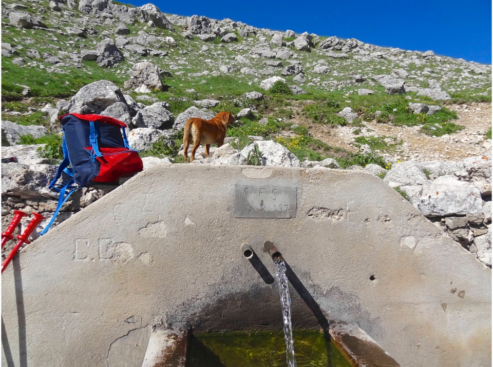Simpatica presenza di un cagnetto, che ci ha accompagnato per tutta la durata dell’escursione, da Frattura alla vetta, aiutandoci spesso ad individuare la via più comoda del percorso.