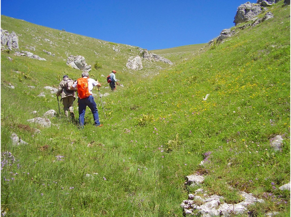 Roberto e Stefano in preda ad una crisi di fame, si sono inizialmente fermati alla fonte Genzana, ma una volta riposati e ristorati hanno anch’essi, proseguito verso la cima, fermandosi, data l’ora, all’anticima a quota m 2083 e ricongiungendosi così con il resto del gruppo per riprendere la via del ritorno.