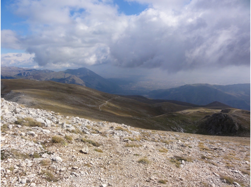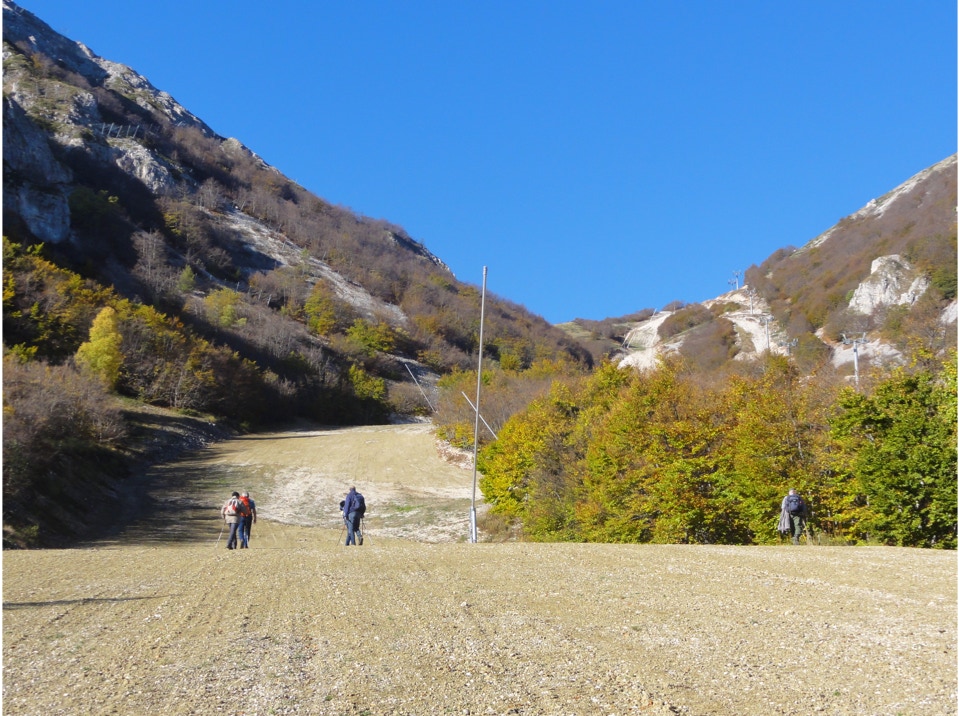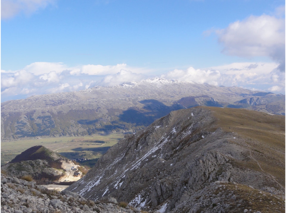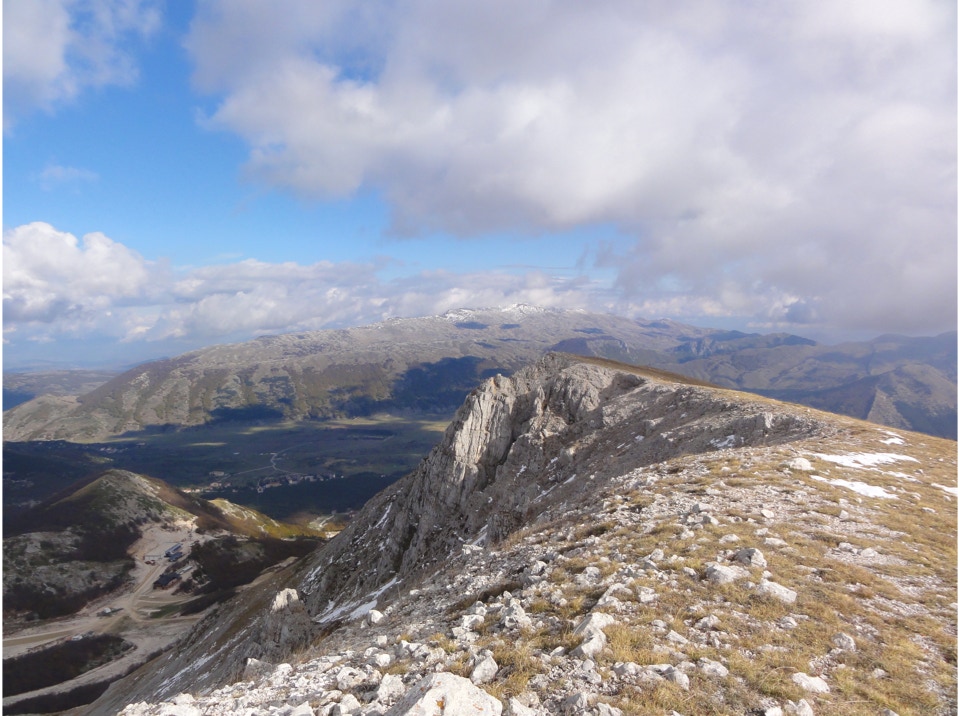 Ritornati sulla cresta della Magnola, si percorre il sentiero segnato, seguendo il filo di cresta in direzione Ovest con ottimi panorami su Avezzano e sui monti circostanti, fino a tornare al Rif. Telespazio (1970 m), poi si continua in direzione est, fino a Monte Freddo (1854 m), e, seguendo il tracciato del “Pistone” (pista nera), si ritorna al Piazzale della Magnola. Quest’ultima parte del tracciato, essendo molto ripida e, in mancanza di neve, sassosa e scivolosa, si può evitare tornando per la stessa via dell’andata, più lunga ma, certamente, più agevole.