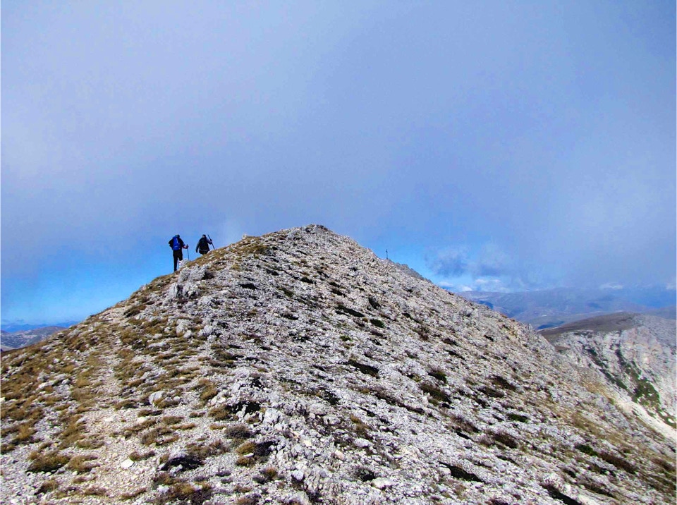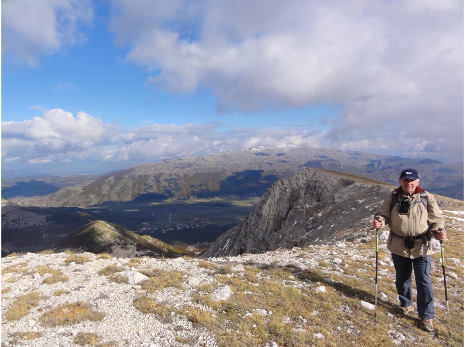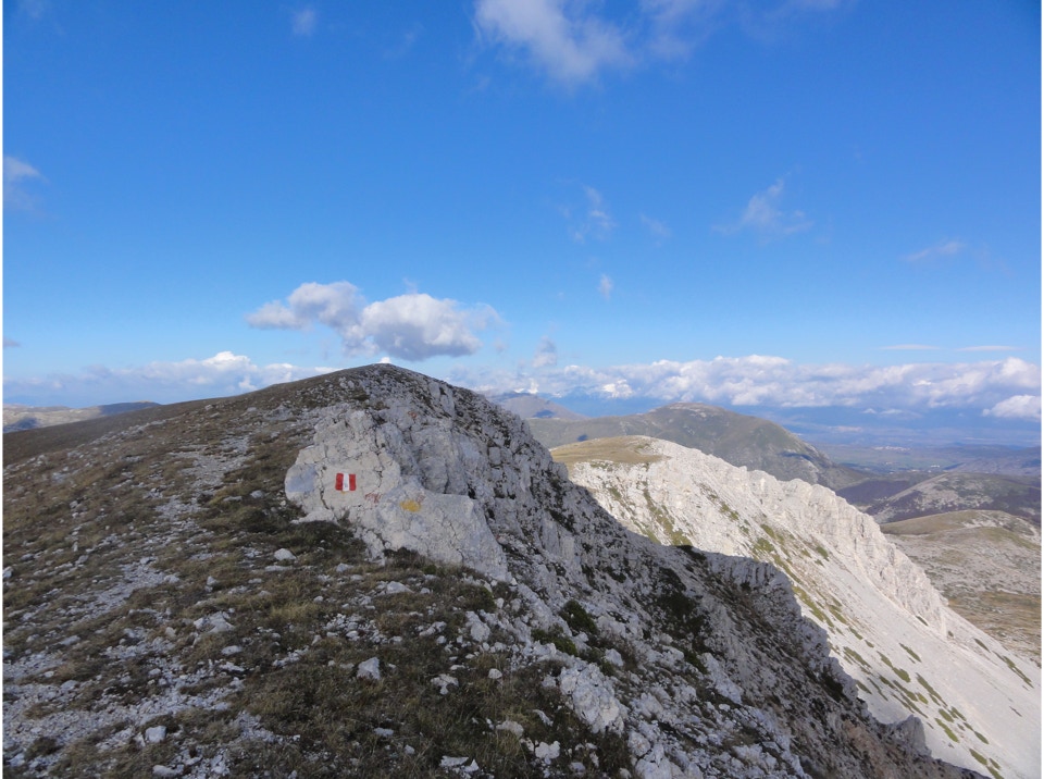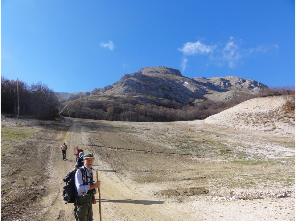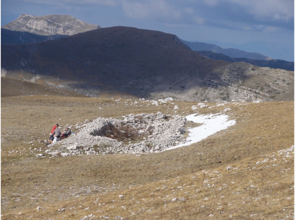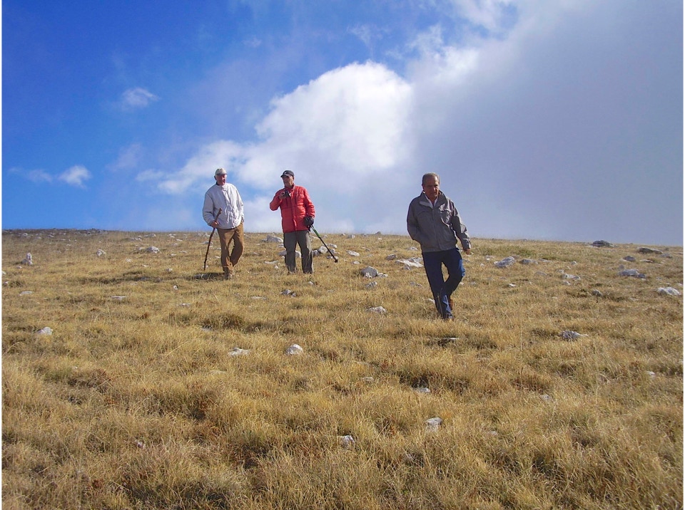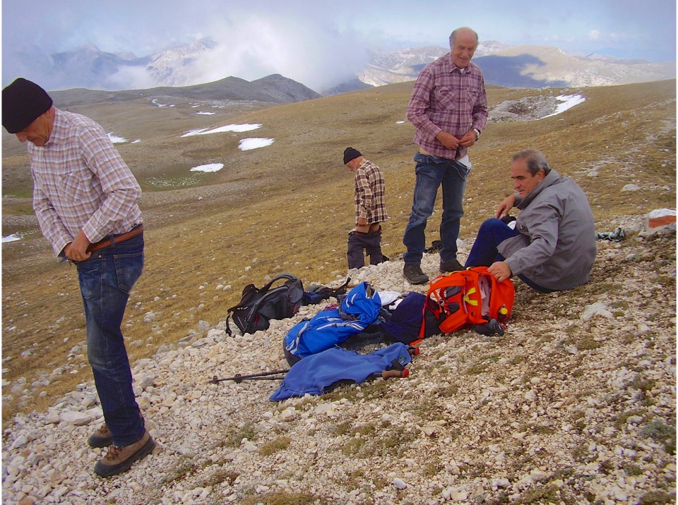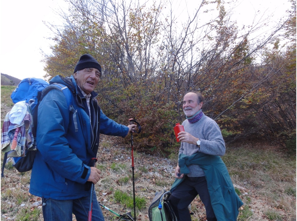 Una piccola deviazione verso Ovest ha condotto alcuni dei partecipanti (Achille, Giorgio, Paolo e Emilio) al visibilissimo Rifugio Magrini (Panei) e alla Sentinella (2178 m); il rifugio purtroppo è in cattivissimo stato, ma poco più avanti ci si può affacciare sulla Valle del Bicchero, lo spettacolo sul gruppo del Velino è grandioso.