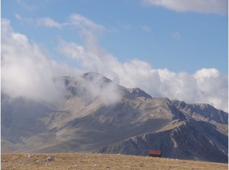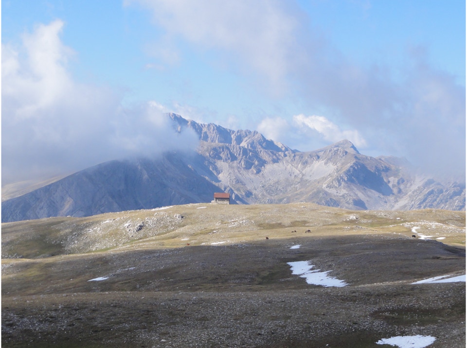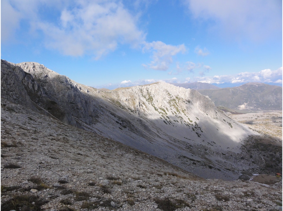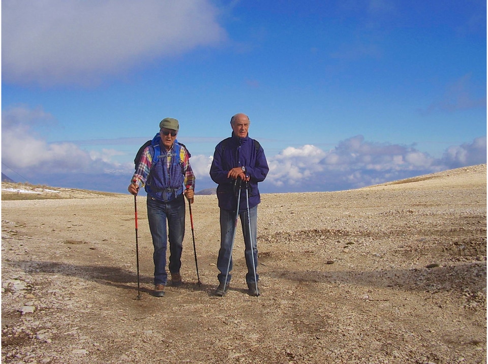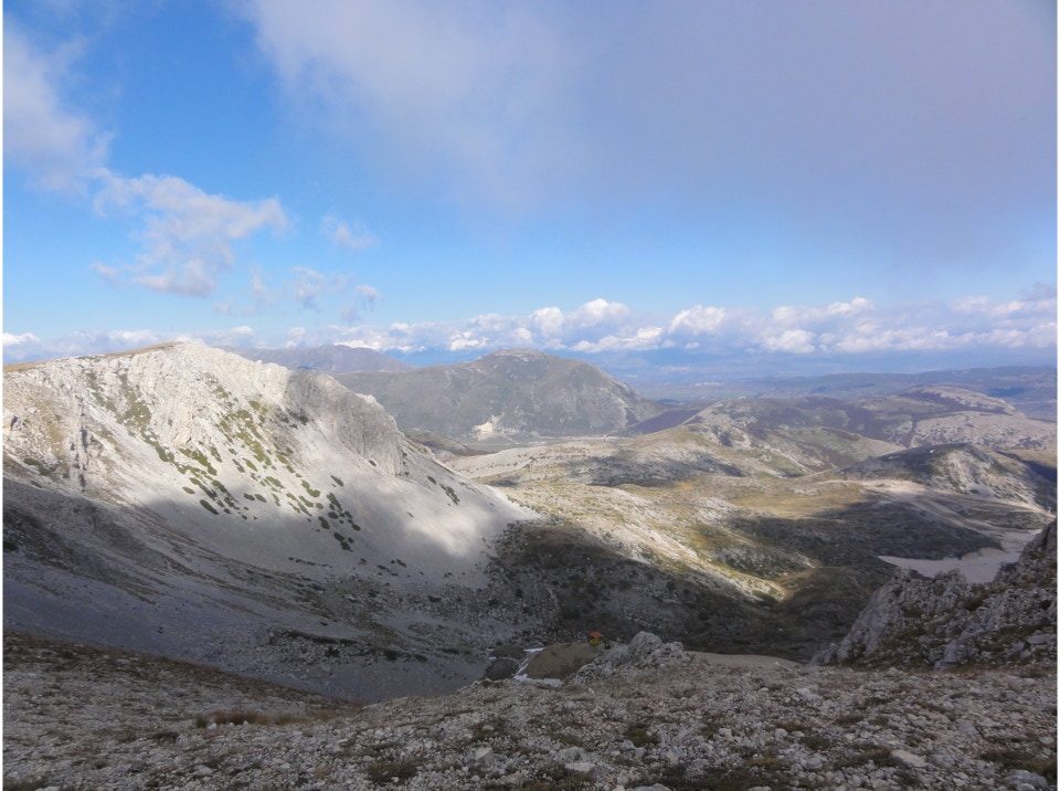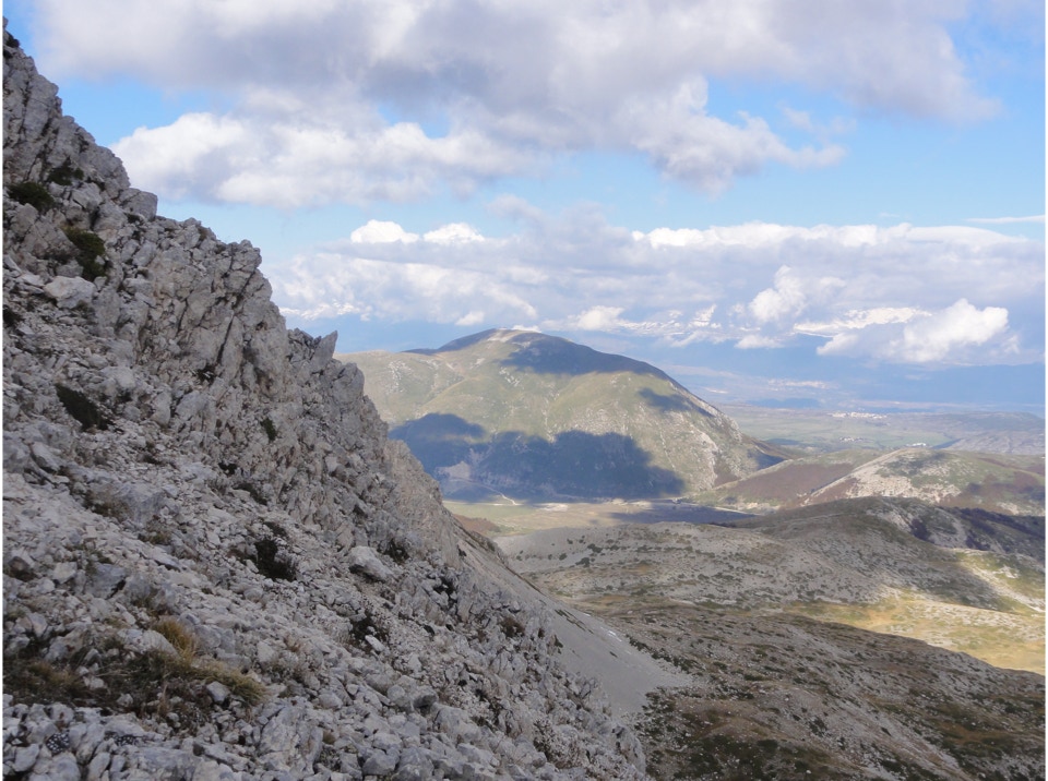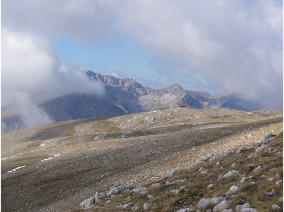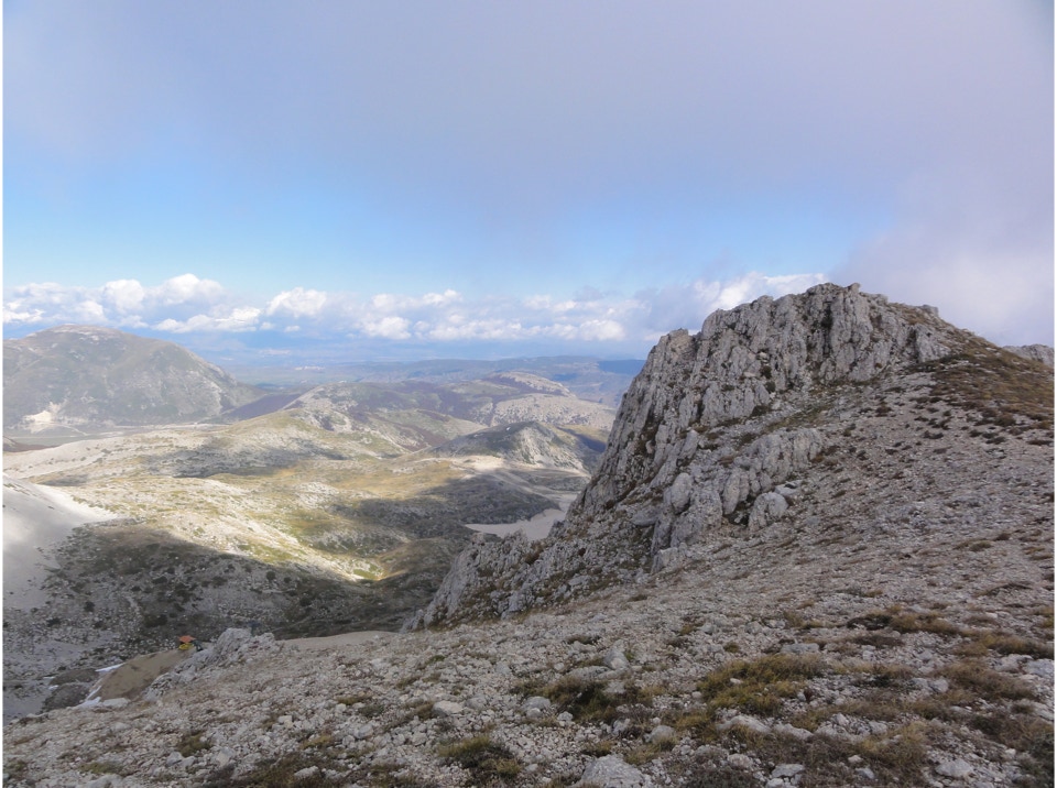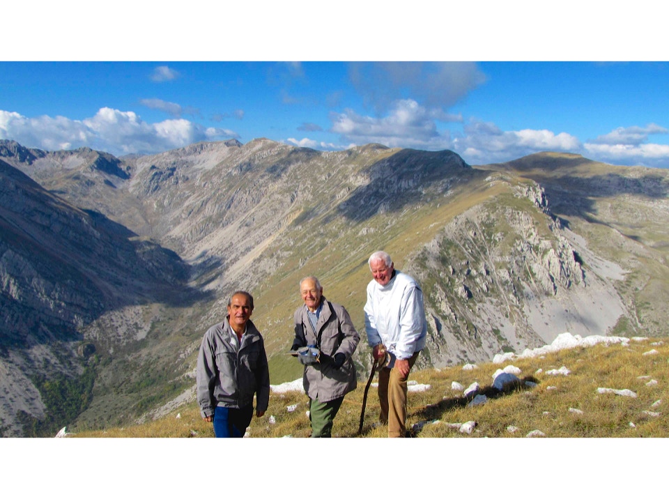 Una piccola deviazione verso Ovest ha condotto alcuni dei partecipanti (Achille, Giorgio, Paolo e Emilio) al visibilissimo Rifugio Magrini (Panei) e alla Sentinella (2178 m); il rifugio purtroppo è in cattivissimo stato, ma poco più avanti ci si può affacciare sulla Valle del Bicchero, lo spettacolo sul gruppo del Velino è grandioso.