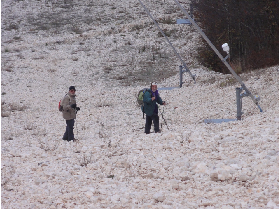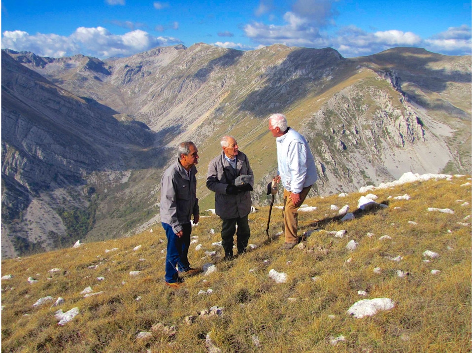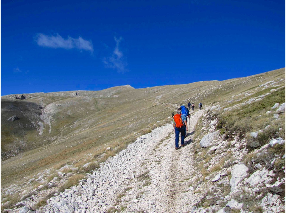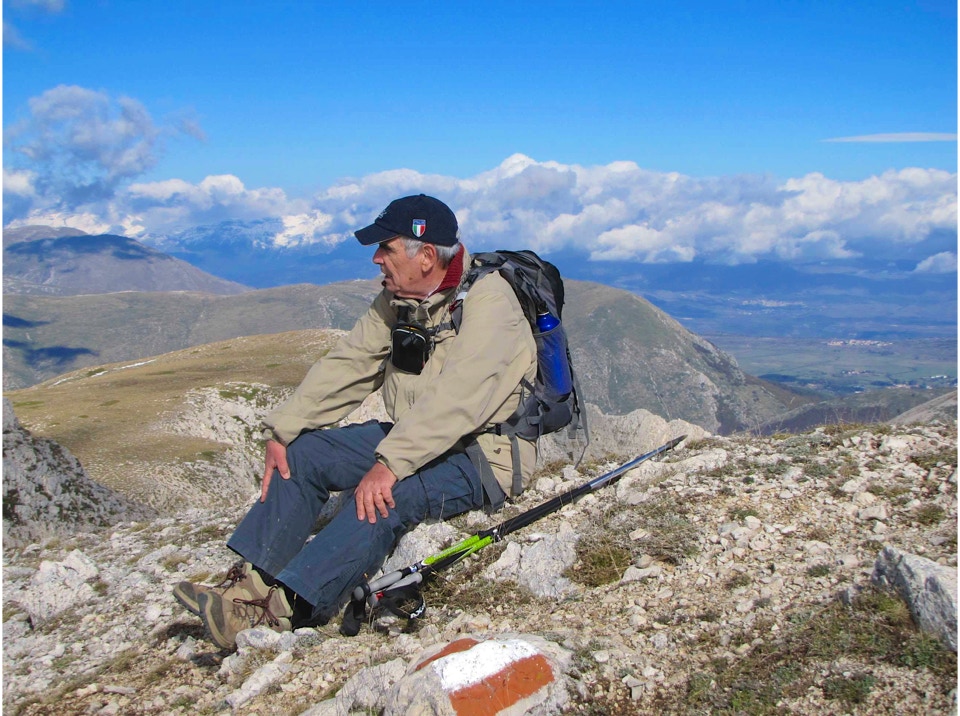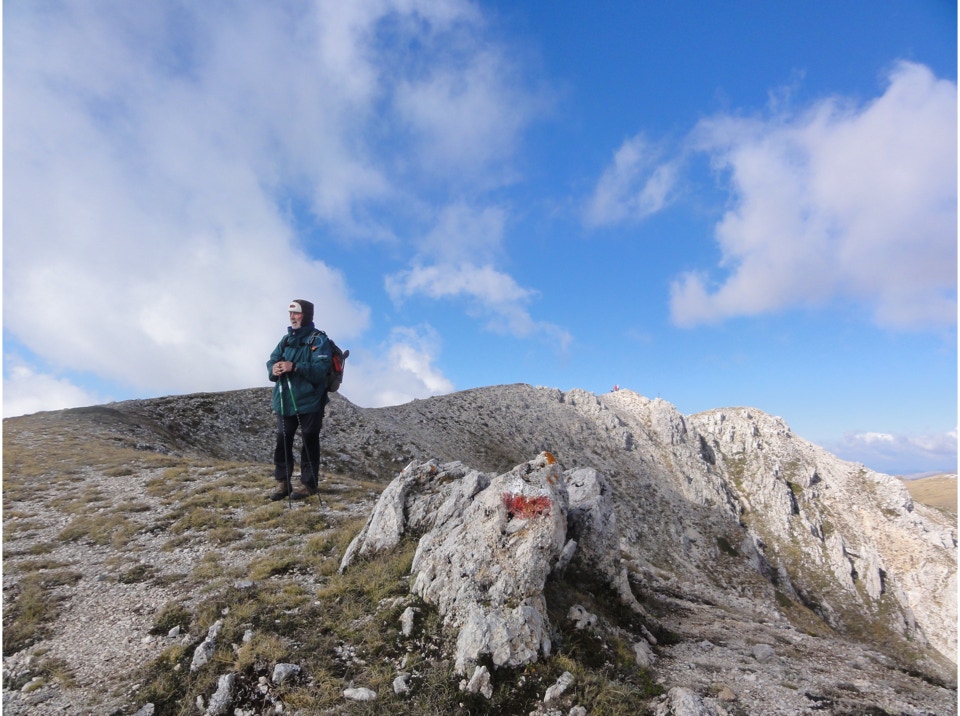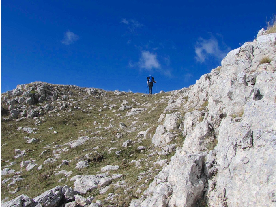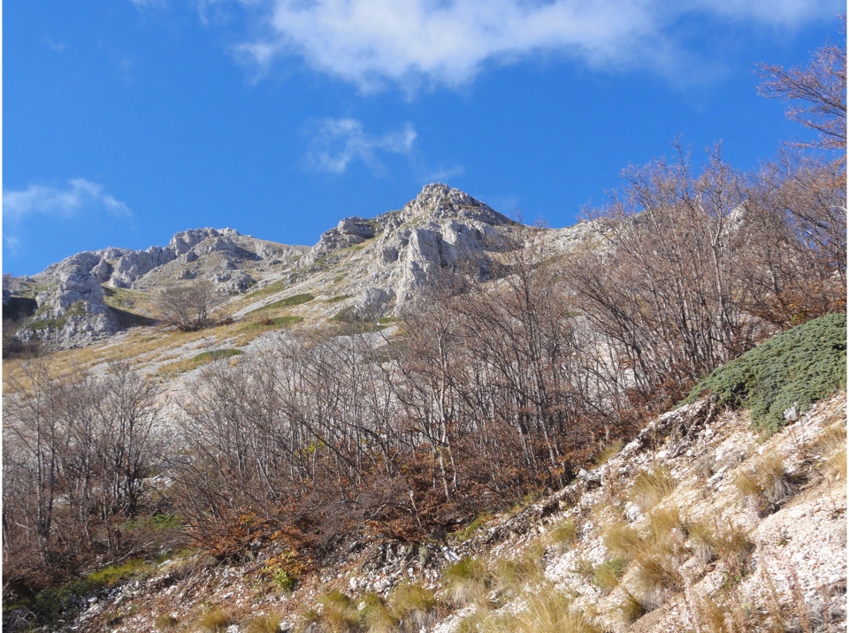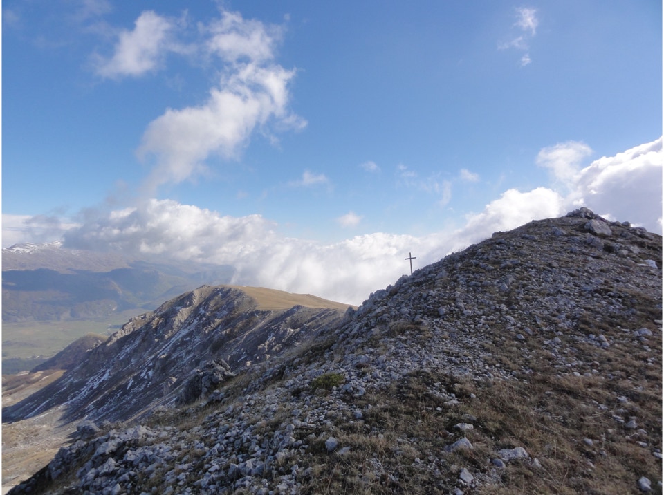 Una piccola deviazione verso Ovest ha condotto alcuni dei partecipanti (Achille, Giorgio, Paolo e Emilio) al visibilissimo Rifugio Magrini (Panei) e alla Sentinella (2178 m); il rifugio purtroppo è in cattivissimo stato, ma poco più avanti ci si può affacciare sulla Valle del Bicchero, lo spettacolo sul gruppo del Velino è grandioso.