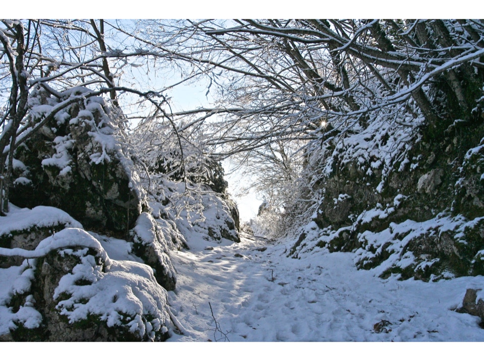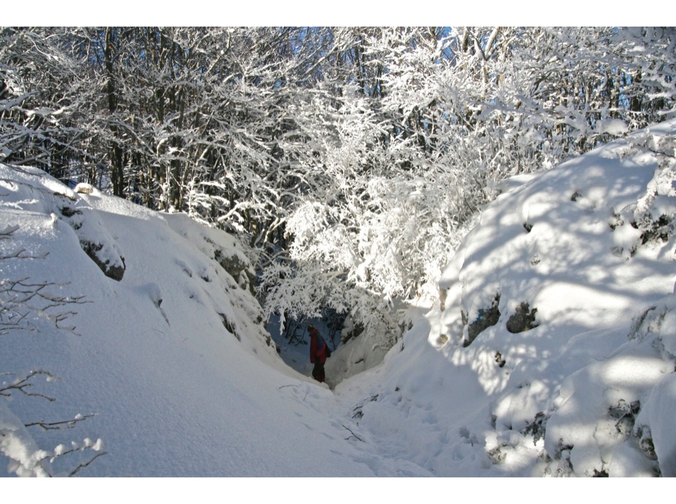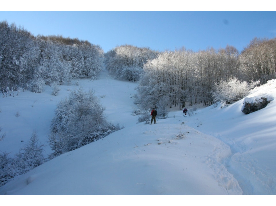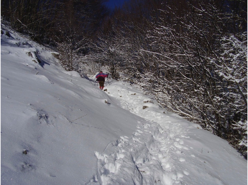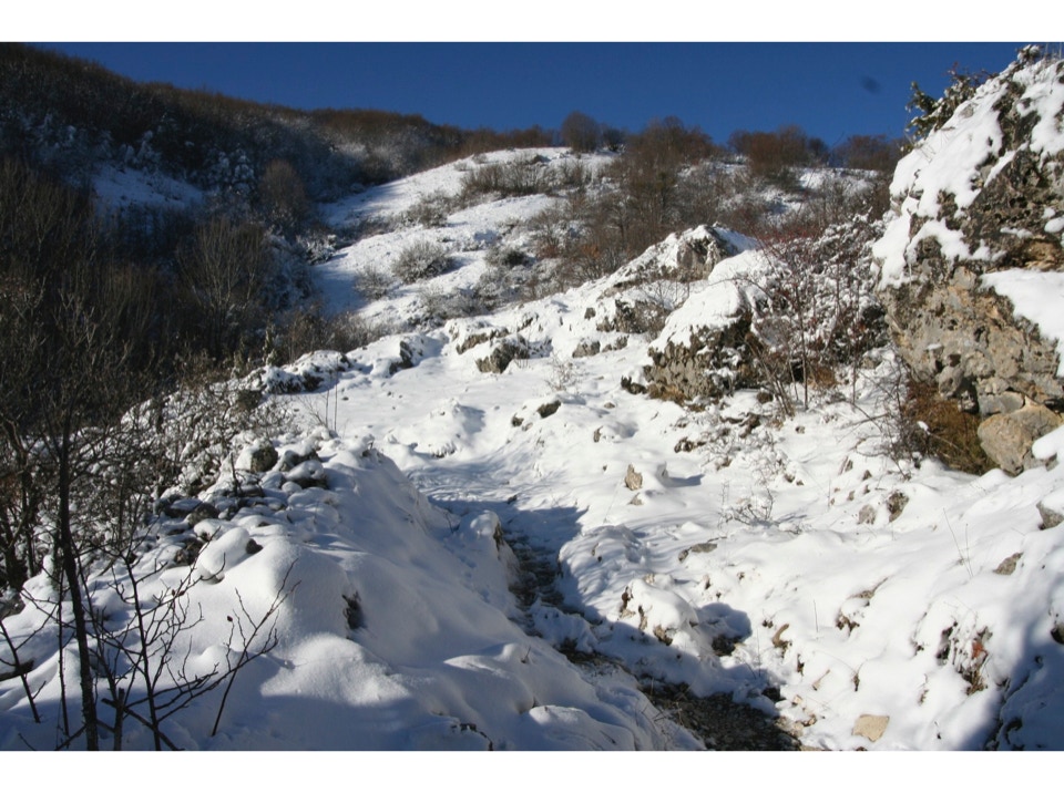 La prima parte del tracciato che si avvia vicino alla chiesa di Sant’Egidio, sopra l'abitato di Verrecchie (fraz. di Cappadocia) e che deve essere seguito con un po’ di attenzione per la segnaletica a volte poco visibile, porta al valico delle Fossette (1400 m circa).