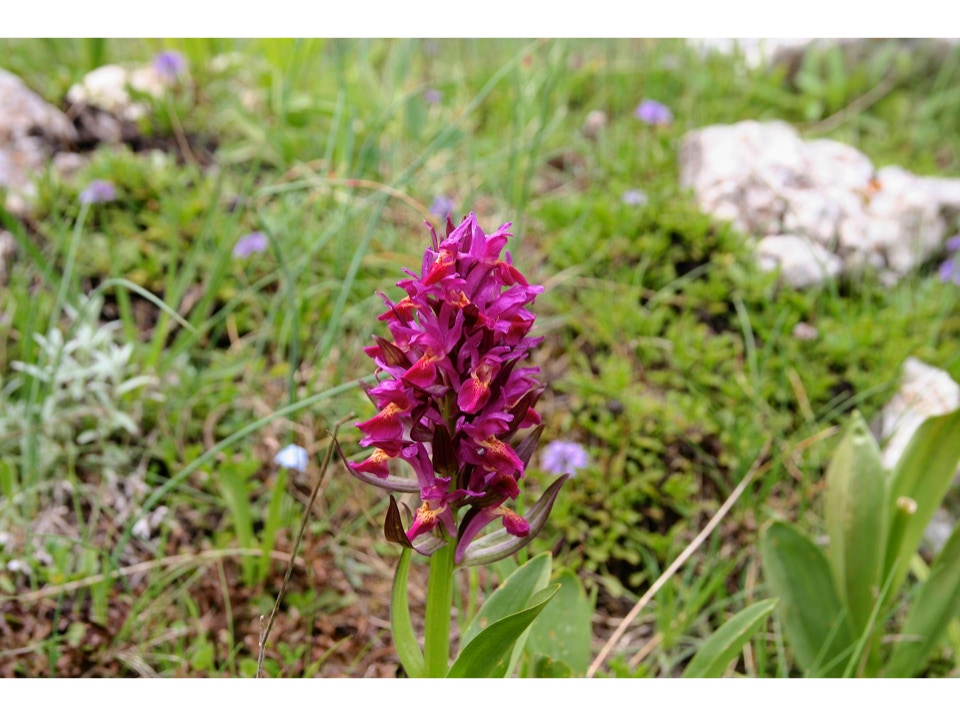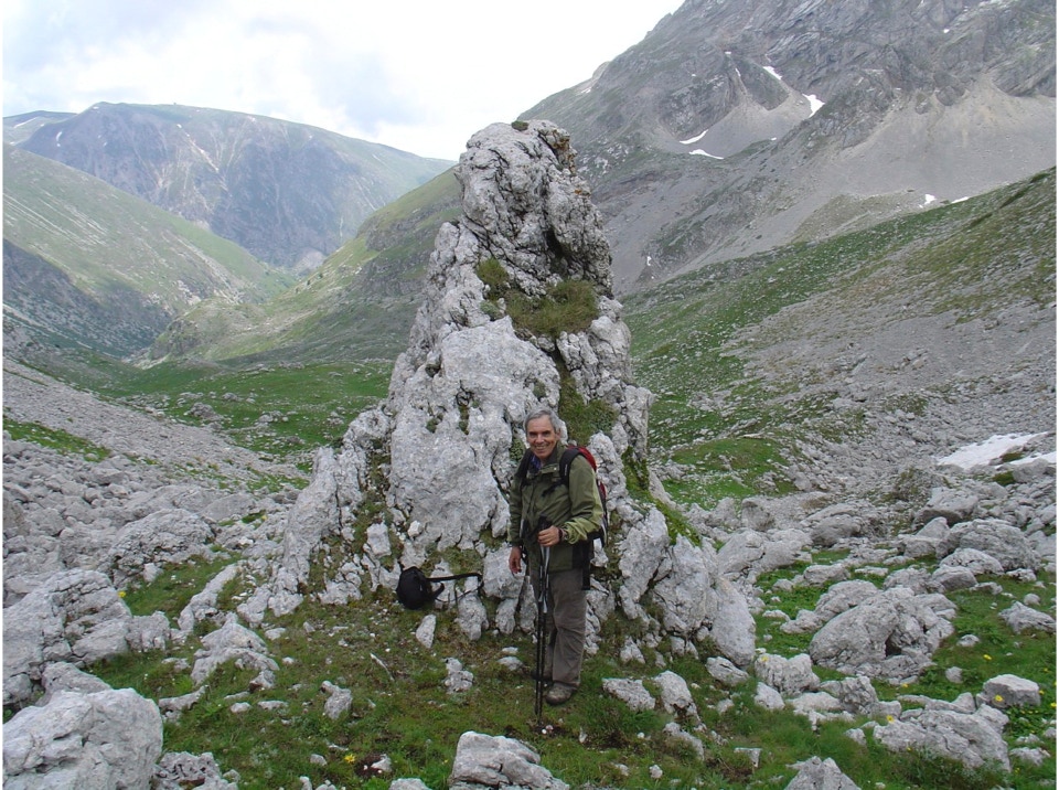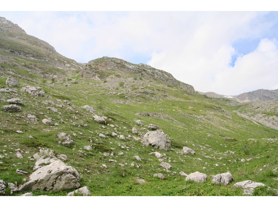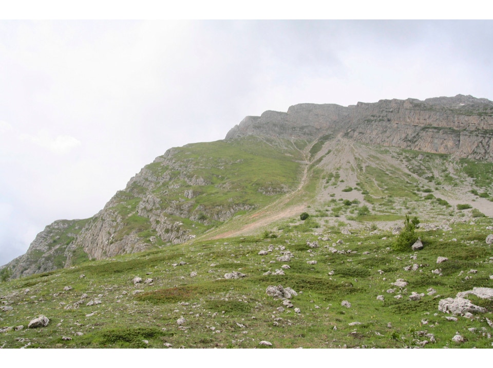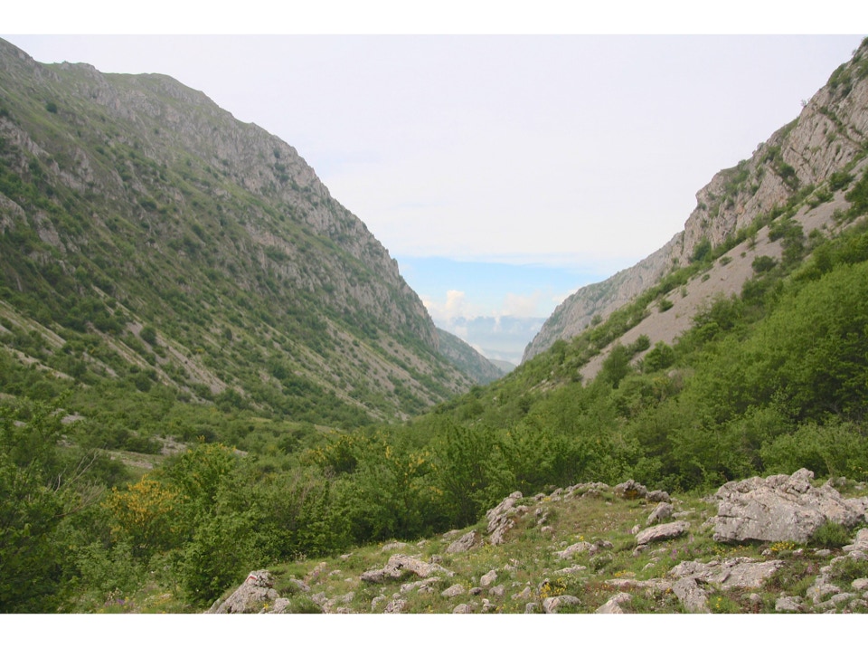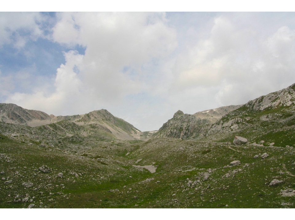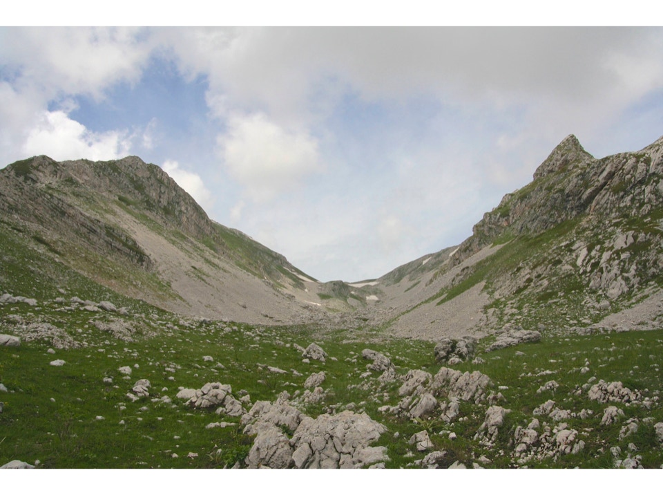 Dal Rifugio Casale da Monte si prende la carrareccia in direzione Forme di Massa d’Albe, si prosegue per pochi minuti fino a Peschio Rovicino m 1133 riconoscibile dalla bacheca della Forestale e da un cippo di pietra a memoria di due escursionisti . Da qui il sentiero su traccia evidente percorre tutta la Valle Majellama (ore 1) fino a piegare a sn ed immettersi nel Vallone del Bicchero che tra le pareti di Costa Stellata a ds e il versante nord dei Pratoni di Cafornia a sn, giunge al Colle del Bicchero m 2075.