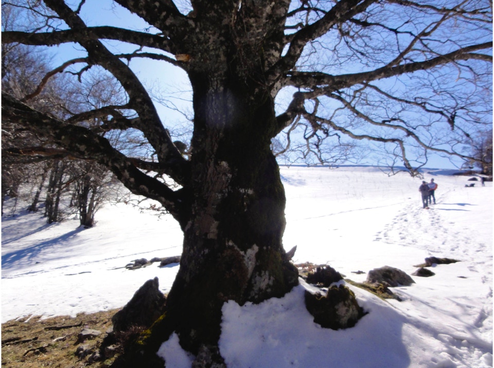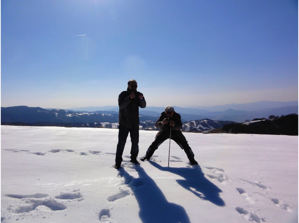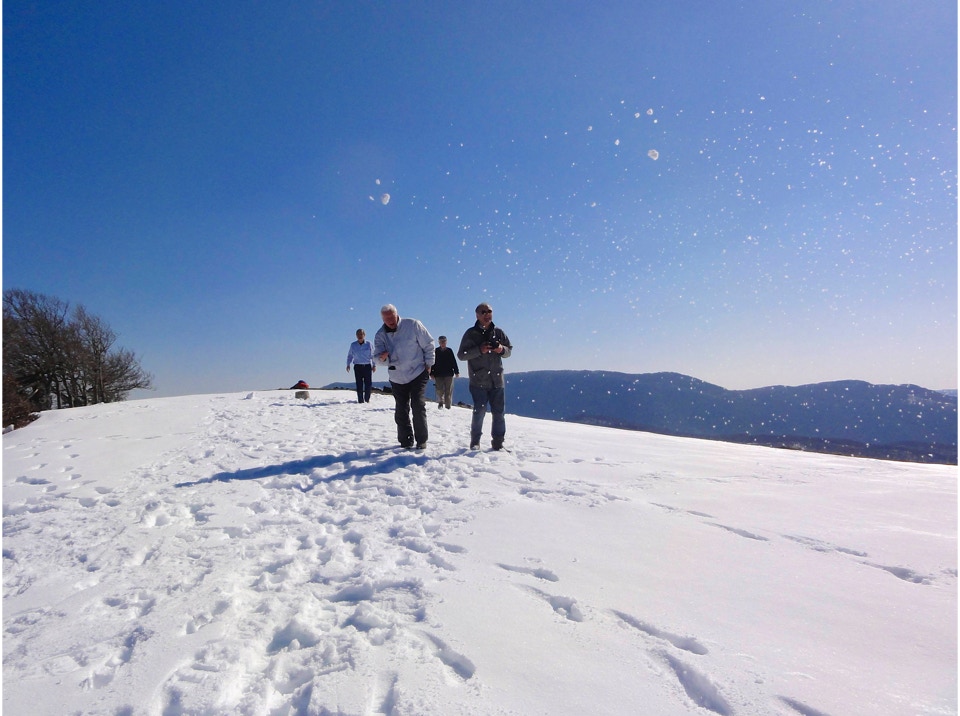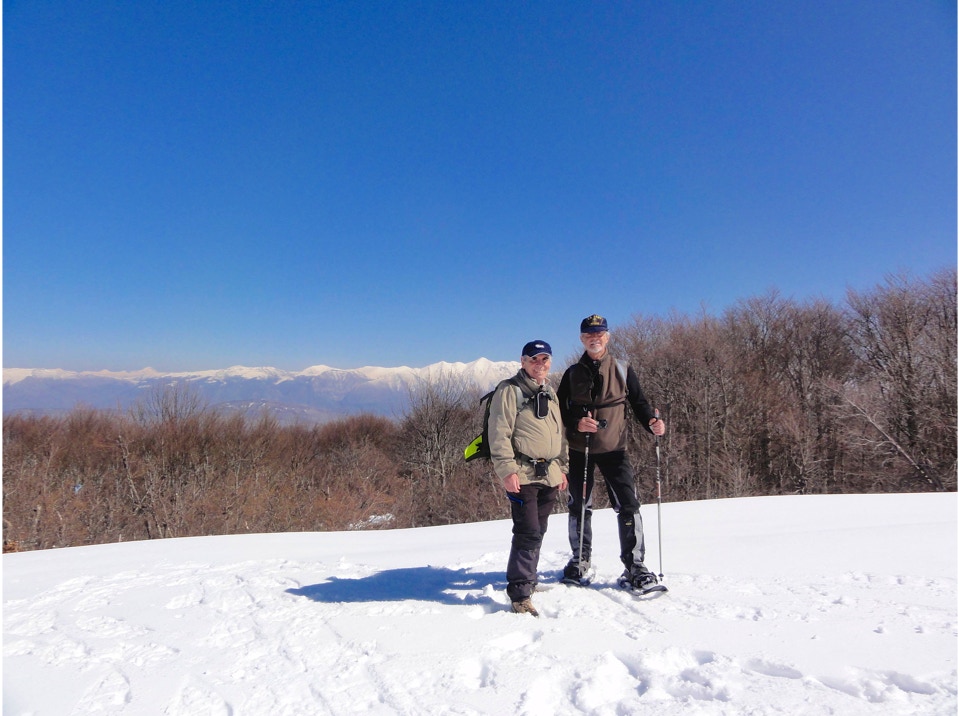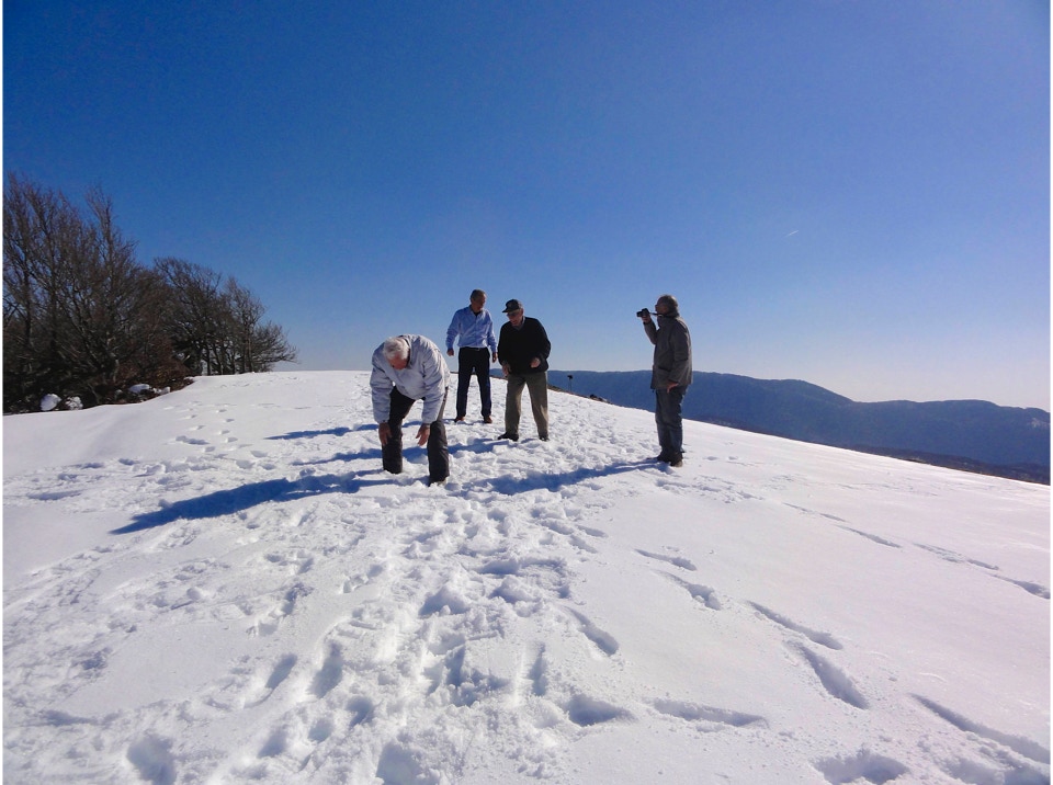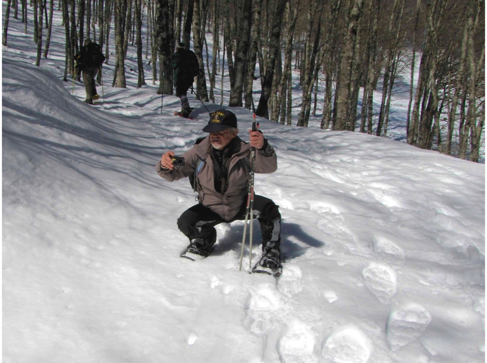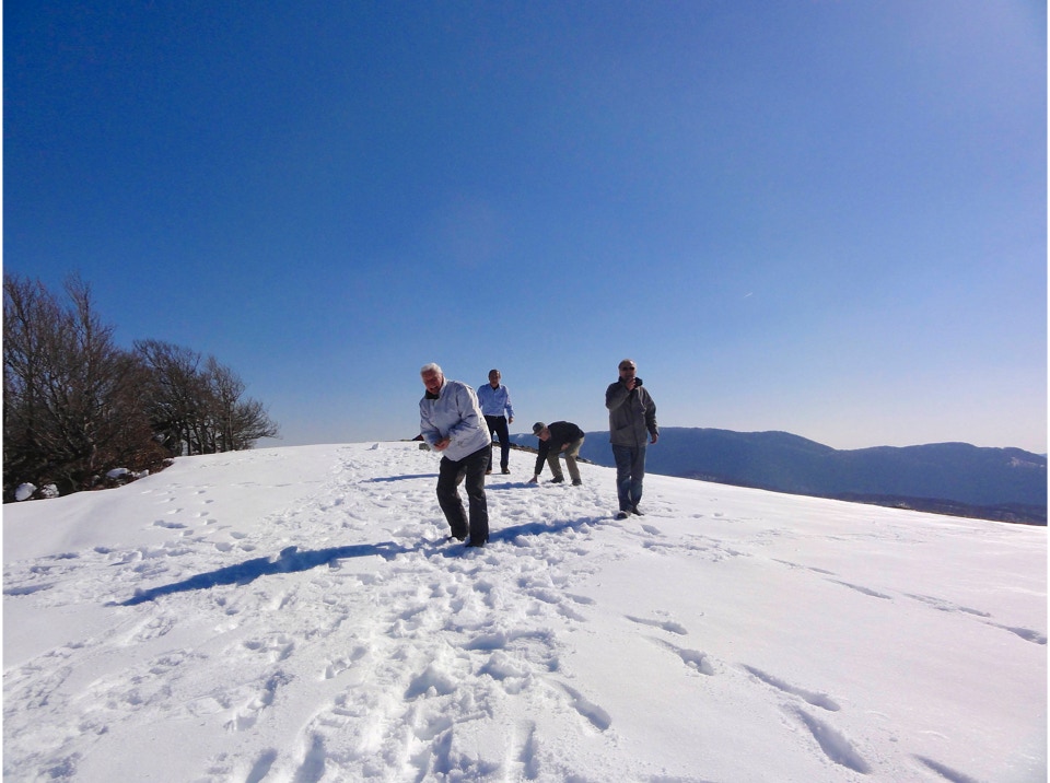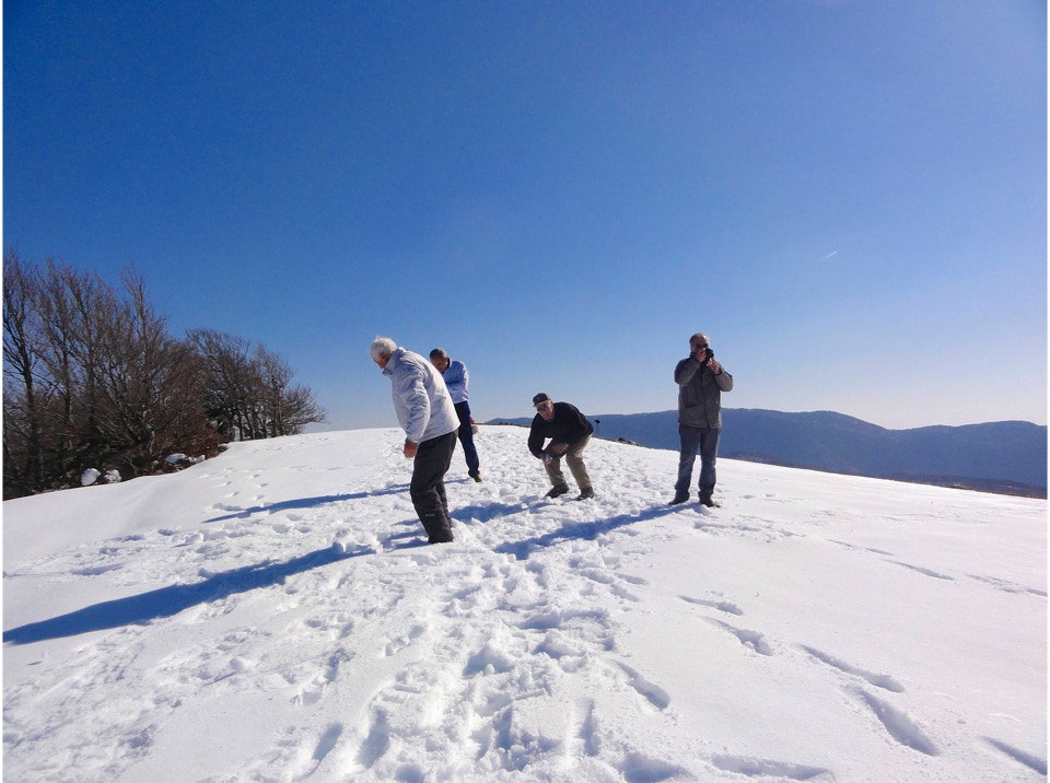 Lo scarso innevamento ha permesso a chi lo ha preferito, di effettuare l’escursione anche senza ciaspole, mentre il forte vento freddo della cima ha consigliato di pranzare direttamente a Campo Staffi, dove la gentile ospitalità di un bar, ci ha consentito di imbandire un lauto e ben innaffiato pranzo.