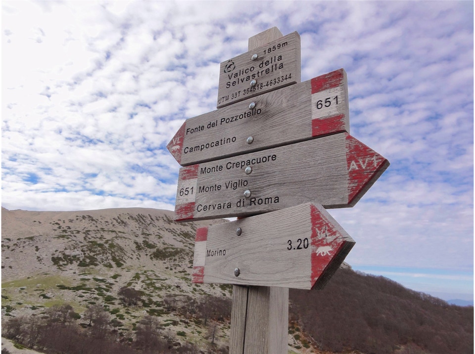 Dal parcheggio di Campocatino si attraversa l´ampia piana erbosa seguendo la mulattiera (sentiero n° 602) che si dirige verso un agevole varco (q. 1850 m) per il Peschio delle Cornacchie. Continuando a seguire l’ampio sentiero n° 601, si costeggia il massiccio calcareo del Peschio fino a raggiungere la Sella Pozzotello e, con una ripida discesa, la Fonte Pozzotello (q. 1891 m - vi si trova una sorgente di acqua potabile ed un capanno recentemente restaurati). Da qui si imbocca l´evidente traccia (sentiero n° 651) che risale il versante W del Peschio delle Ciavole, oltrepassa il Valico di Selvastrella e prosegue lungo la cresta fino alla vetta del Monte Crepacuore, riconoscibile per la presenza dei resti di un antico cippo di confine e di una croce posta recentemente.