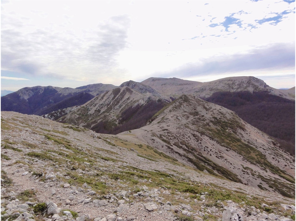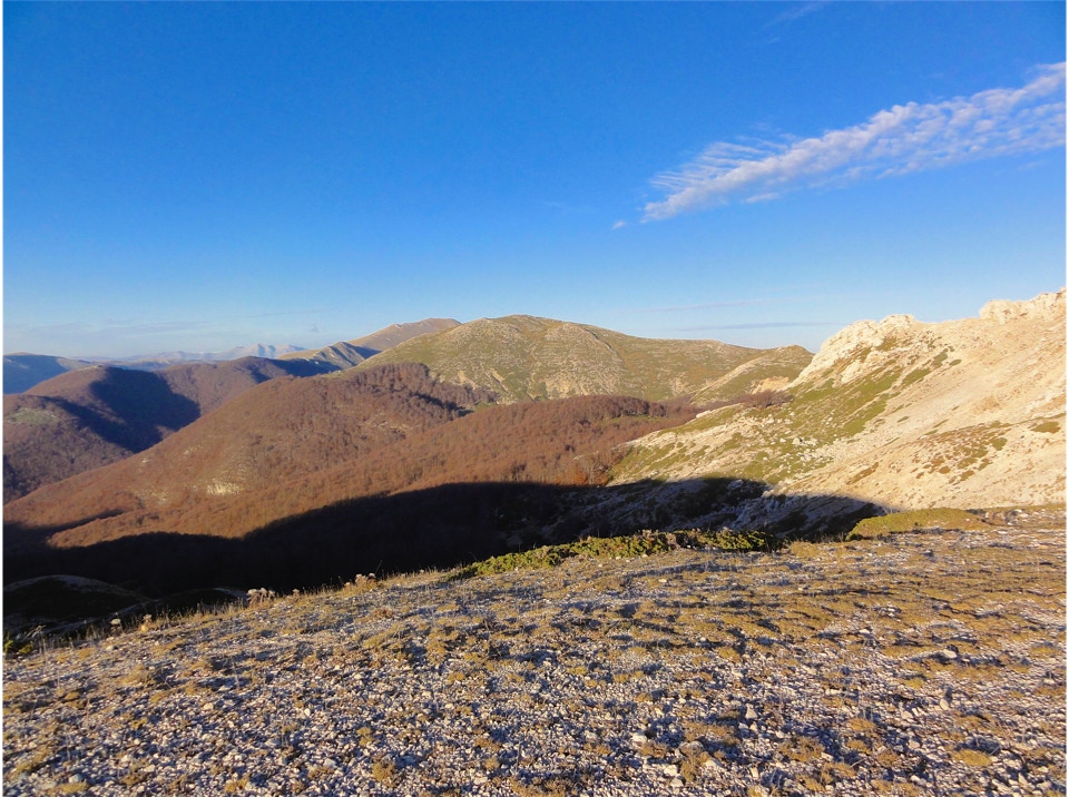 Il ritorno è avvenuto, tornando nuovamente alla Fonte del Pozzotello e poi tramite il sent. 602 (sentiero dei Fiori), che aggira il versante nord del Peschio delle Cornacchie, e si ricongiunge con il percorso dell’andata, che, attraversando il pianoro di Campocatino, riconduce al piazzale del parcheggio.