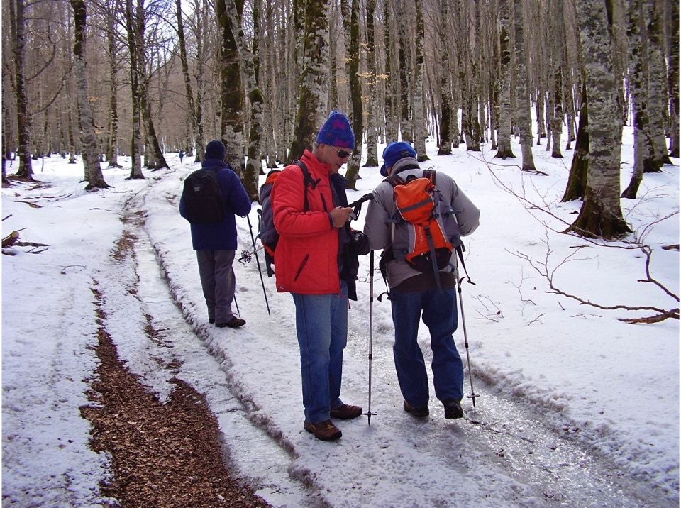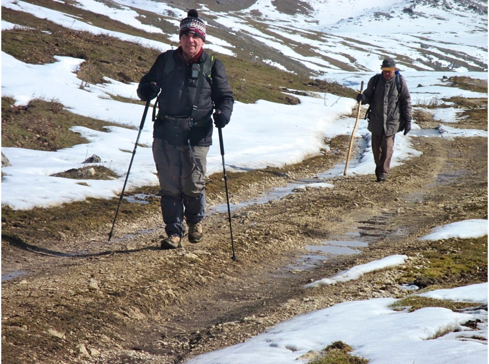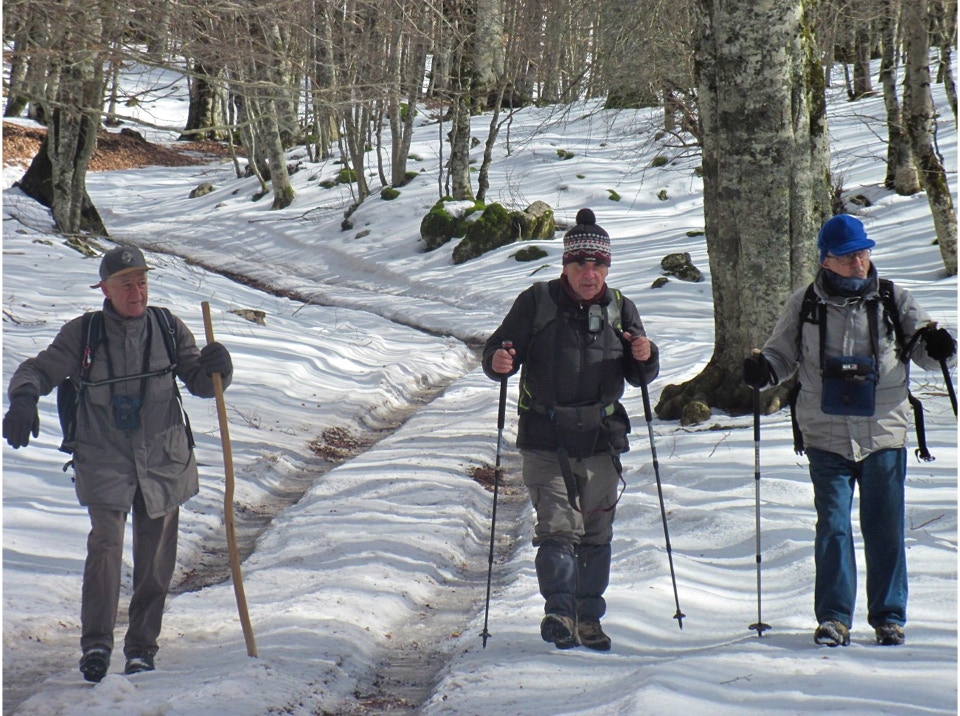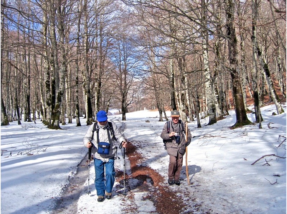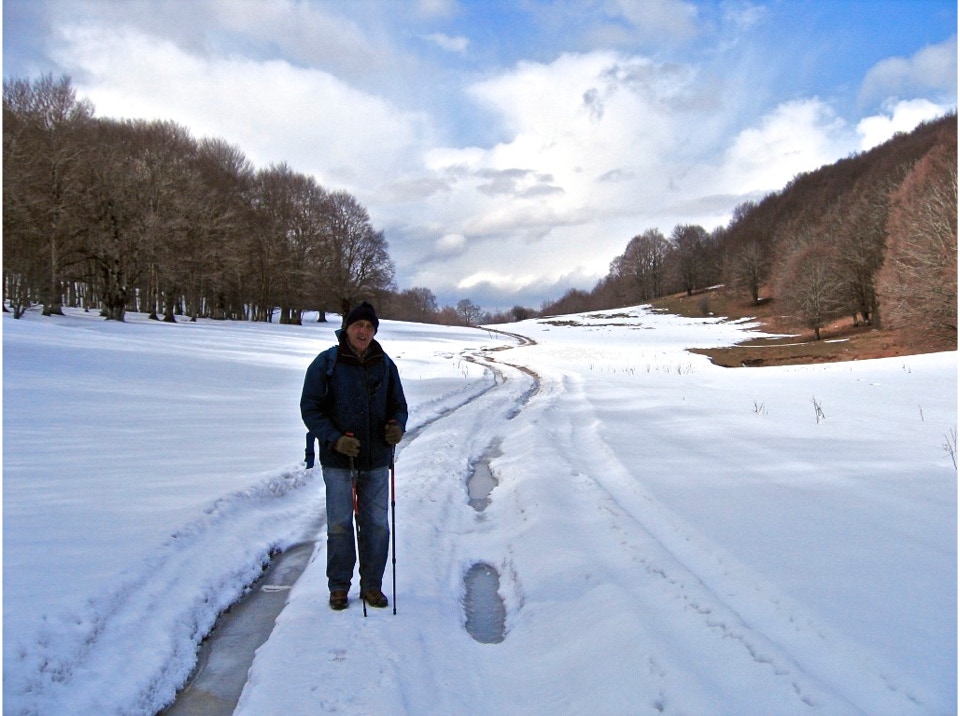 Condizioni meteo variabili da sereno a molto nuvoloso con leggero nevischio, temperatura piuttosto bassa (per la prima volta Luigi non ha avuto bisogno di sciorinare il famoso... bucato!), neve ghiacciata e compatta.