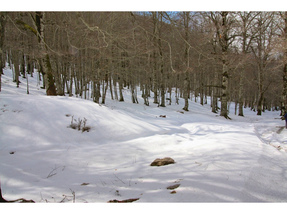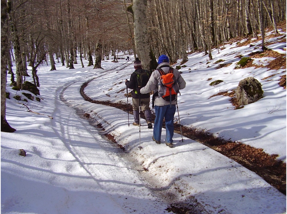 Dopo aver parcheggiato poco sopra al paese (date le pessime condizione della strada) si passa davanti ad una statua di un alpino e ad un fontanile e si prosegue lungo la carrozzabile in direzione di Campolungo. La si segue fino ad uscire dal bosco e raggiungere l'ampio altopiano di Macchialunga, dove in fondo sono posti due stazzi. Si passa vicino agli stazzi, si entra nella fitta faggeta, percorrendola sempre in direzione sud est, fino ad arrivare ad una selletta (1.334 m). Si esce dal bosco e si scende verso l'ampio altopiano di Campolungo. Lo si percorre tutto fino alla parte opposta per risalire in breve a un rifugio di pastori (Rif. Campolungo) a circa 1.350 m. II ritorno è stato effettuato per lo stesso itinerario di andata.