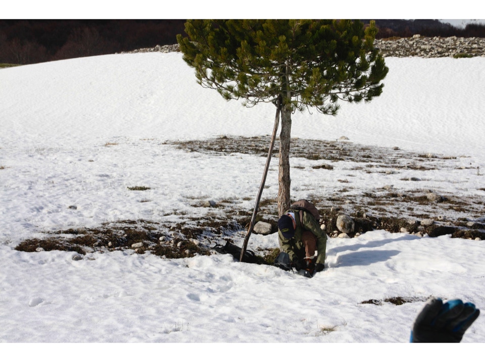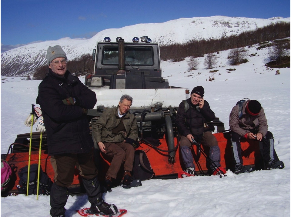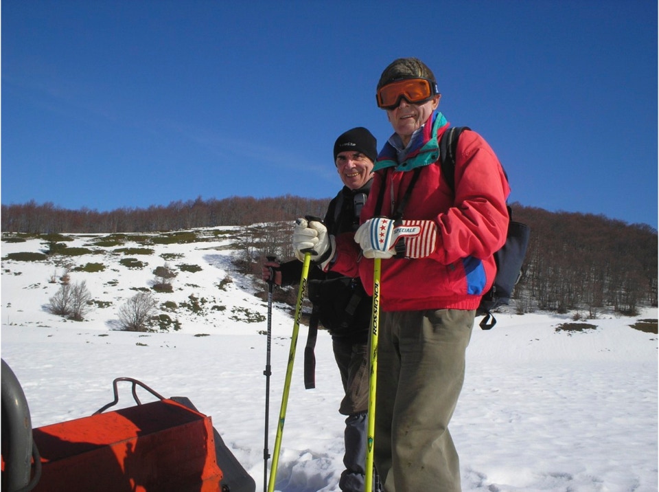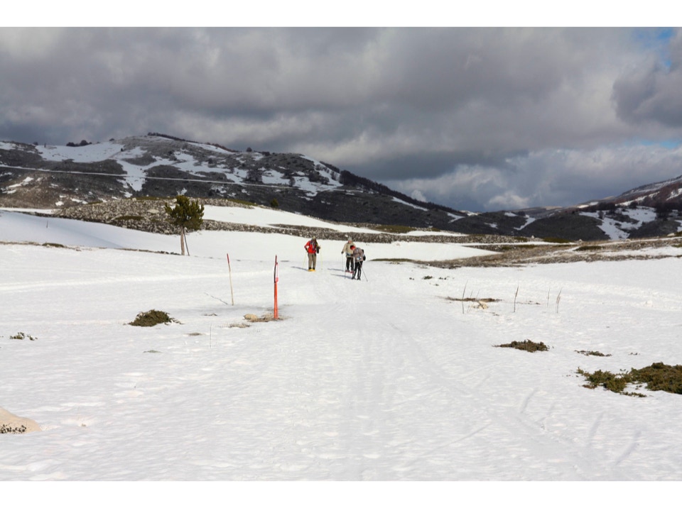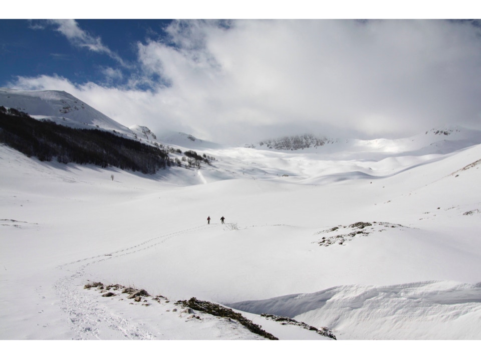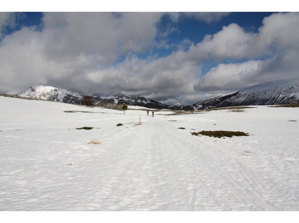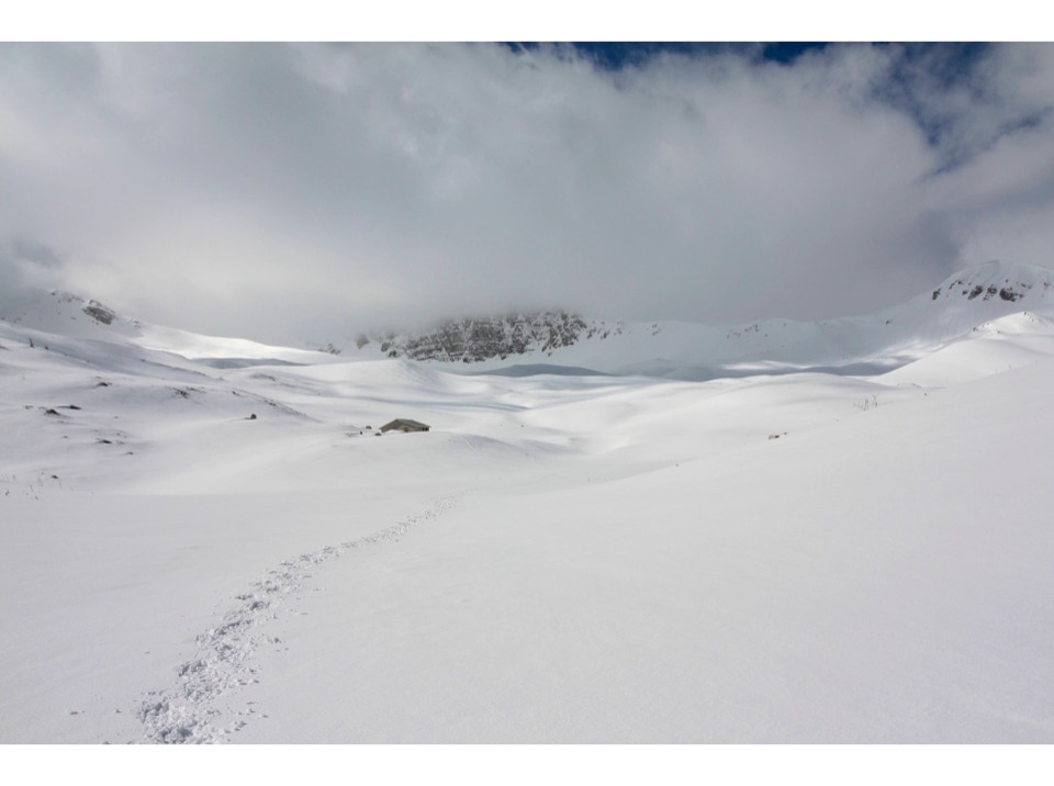 Ennesima ripetizione di una classica “ciaspolata”, con una giornata splendida, con discreto innevamento e con neve piuttosto sfatta a causa della temperatura abbastanza elevata, anche se inizialmente era presente una leggera spolverata notturna. Per un lungo tratto ci hanno accompagnato le tracce di due lupi piuttosto grossi, diretti verso la parte alta della Valle Leona.