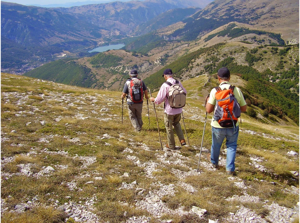 Il percorso, ad anello, inizia dalla Madonna del Carmine, sull'altipiano delle Cinque Miglia, prosegue per il canyon della Montagna Spaccata, l’Imposto (località attrezzata per pic-nic) e raggiunge lungo il crinale S-N la vetta della Serra Sparvera. Al ritorno si scende proseguendo sulla cresta della montagna e deviando poi a destra, verso la Sella Sparvera. Si raggiunge poi lo Stazzo Sparvera e successivamente con un percorso molto ripido, si raggiunge la sterrata che riporta verso la chiesetta della Madonna del Carmine o del Casale (appartiene al comune di Rocca Pia, è di origine medioevale con un bel portale lapideo cinquecentesco) e si torna al punto di partenza. Dalla vetta straordinario il panorama sul lago di Scanno e sulle vette del Parco Naz. d'Abruzzo, della Maiella e, in lontananza, del gruppo del Gran Sasso e del Velino.